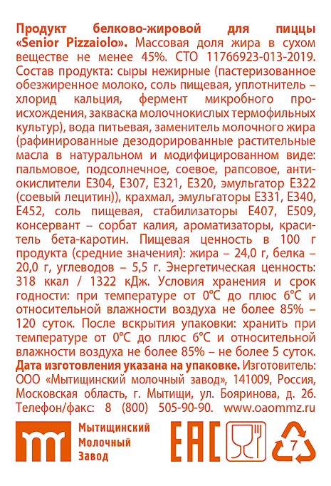 Продукт белково-жировой Senior Pizzaiolo Халяль для пиццы 45%, ~2кг