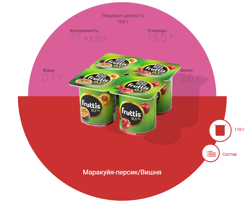 Йогуртный продукт Fruttis Маракуйя-персик/Вишня 0.1%, 110г
