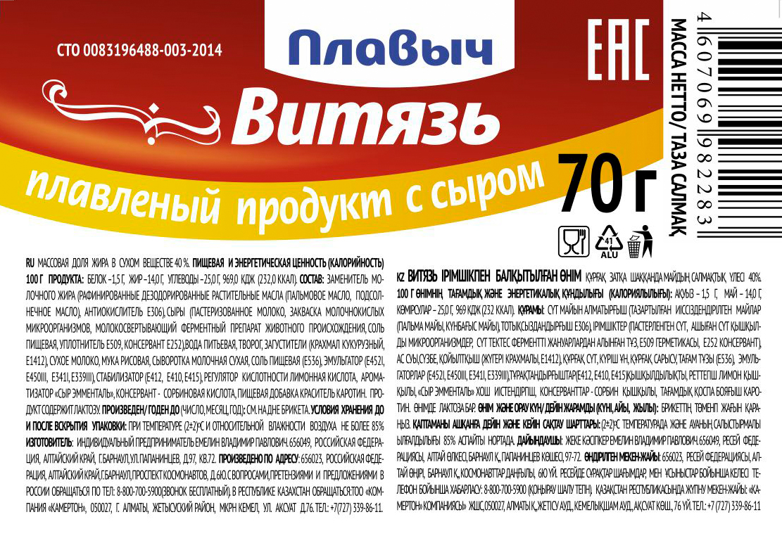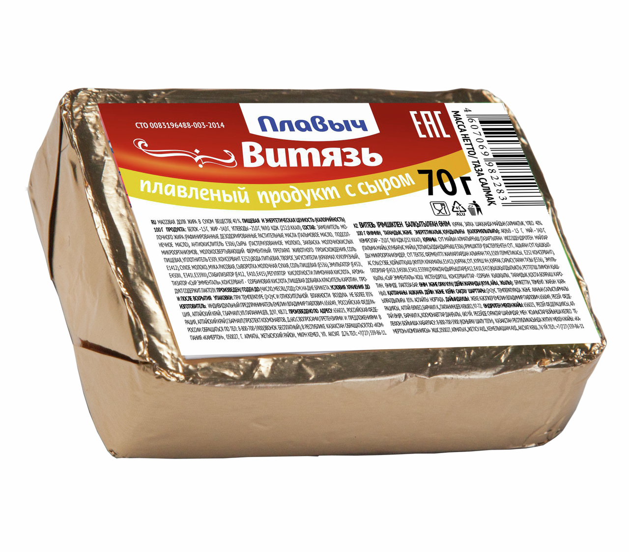Плавленый продукт Плавыч Витязь с сыром 40%, 70 г изготавливается из натуральных ингредиентов. Конечный продукт герметично упакован, поэтому его аромат и вкус не будут смешиваться с посторонними запахами. Лакомство разнообразит повседневный рацион. Оно подойдет для использования в кулинарии, внесет изюминку в холодные и горячие блюда. С помощью плавленого сыра легко приготовить бургеры, сэндвичи для всей семьи. За неимением времени можно просто положить ломтики на тосты, чтобы перекусить на работе или в поездке.