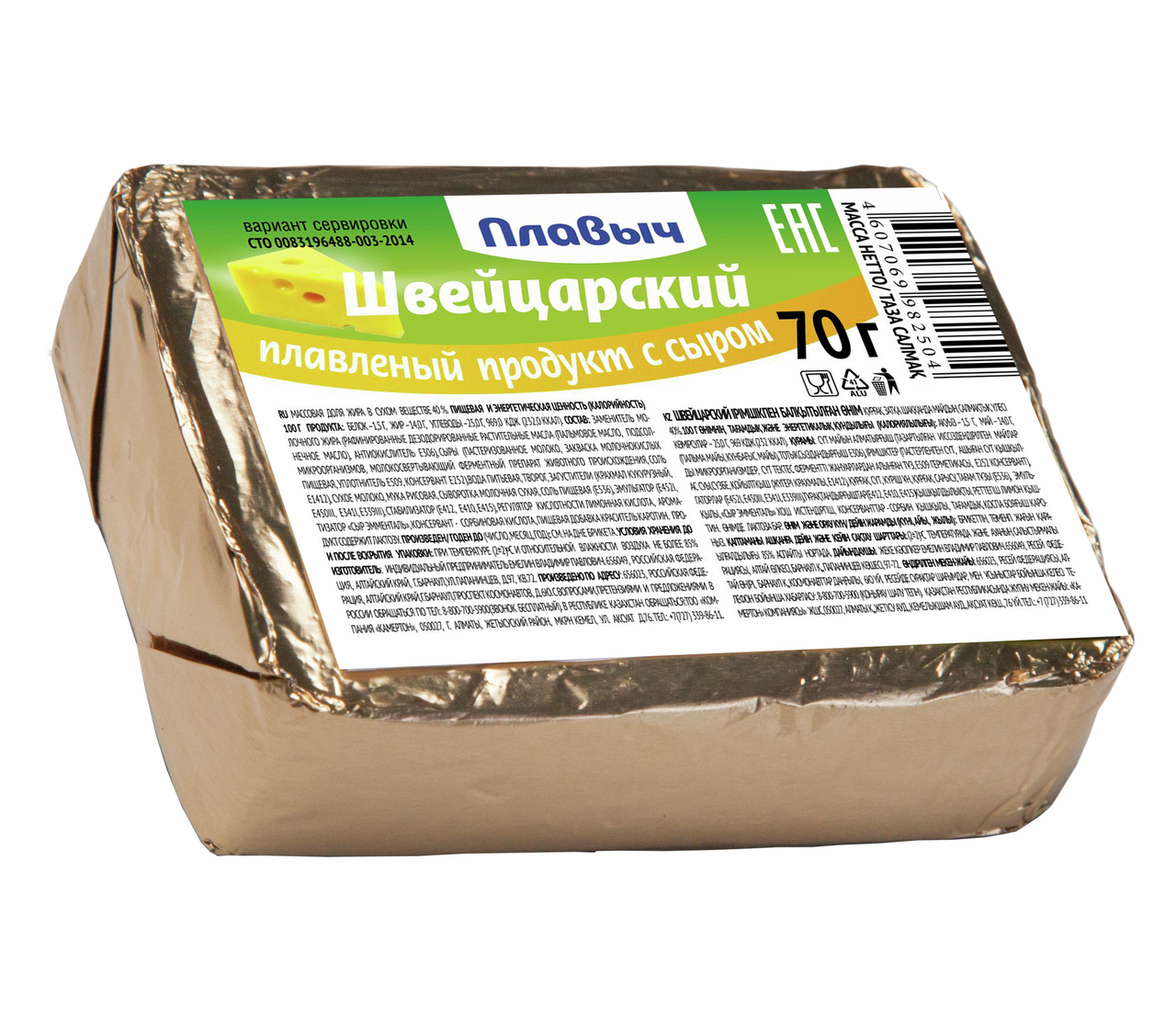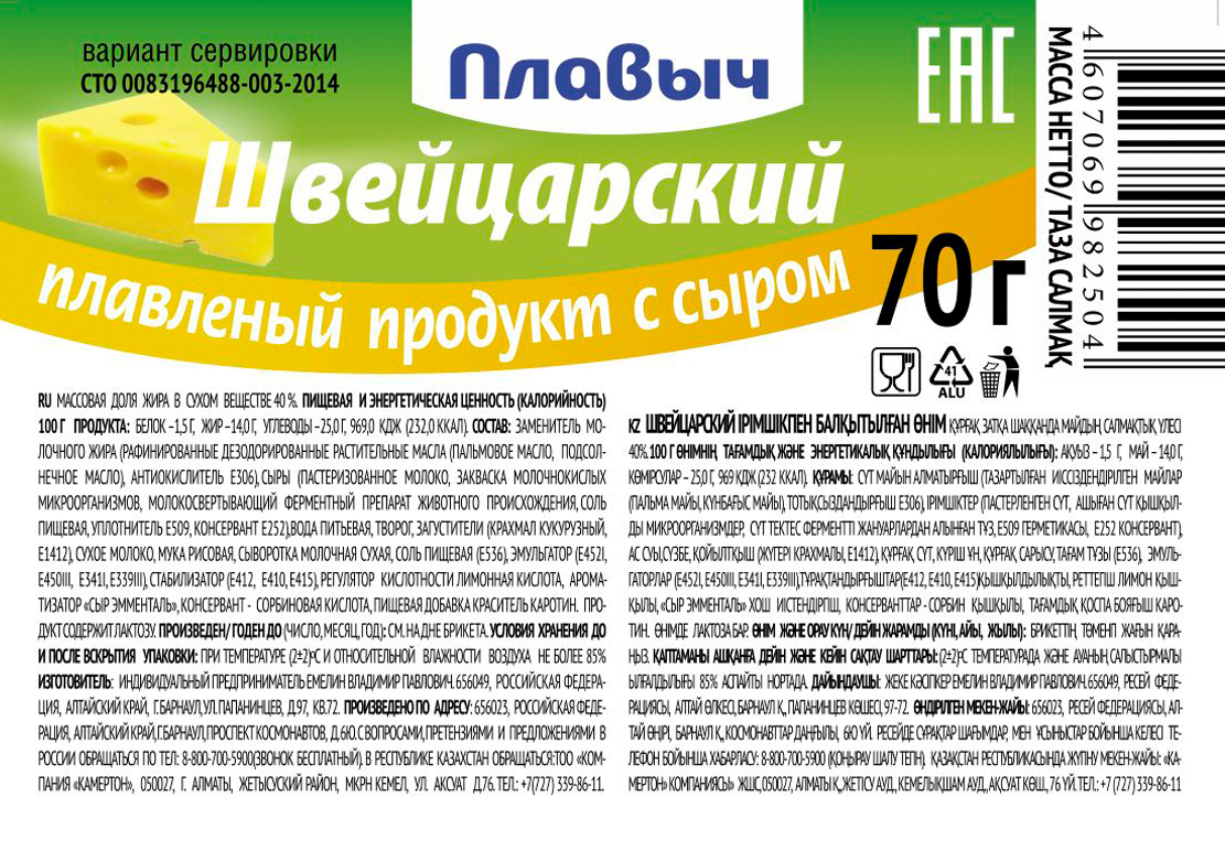 Плавленый продукт с сыром Плавыч Швейцарский, 70 г — отличный вариант для дополнения любого приема пищи или же для сытного перекуса. Это сыр с нежным кремовым вкусом, легким ароматом и длительным молочным послевкусием. Он подходит для горячих и холодных бутербродов, для пасты и пиццы, а также с сыром вкусно пить чай или кофе. Сыр заключен в упаковку, которая надежно защищает его от воздуха, посторонних запахов или влаги. Представленный продукт обладает полезными свойствами и придется подуше не только взрослым, но и маленьким гурманам.