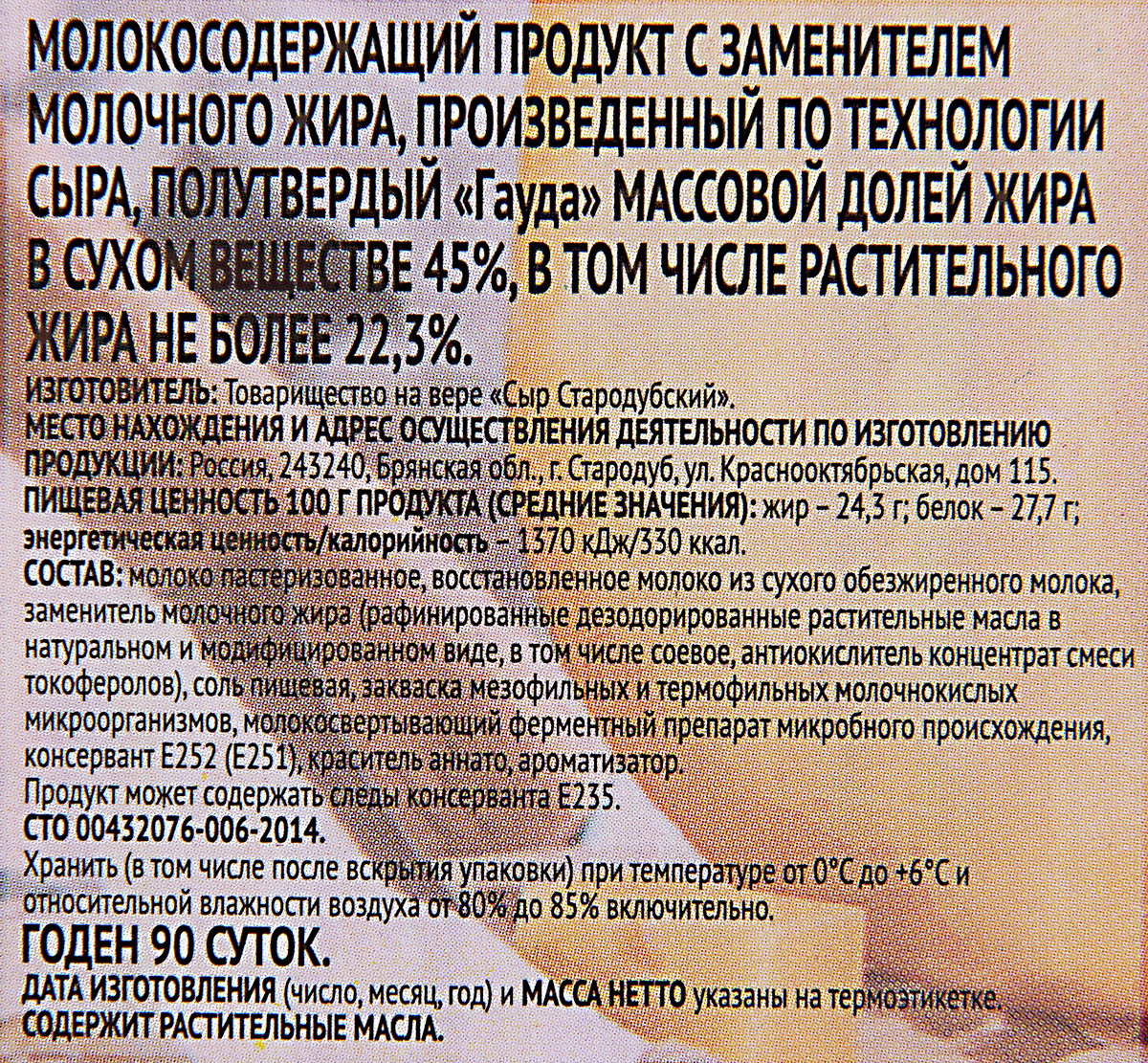 Продукт сырный Стародуб Гауда 45%, ~5.2кг