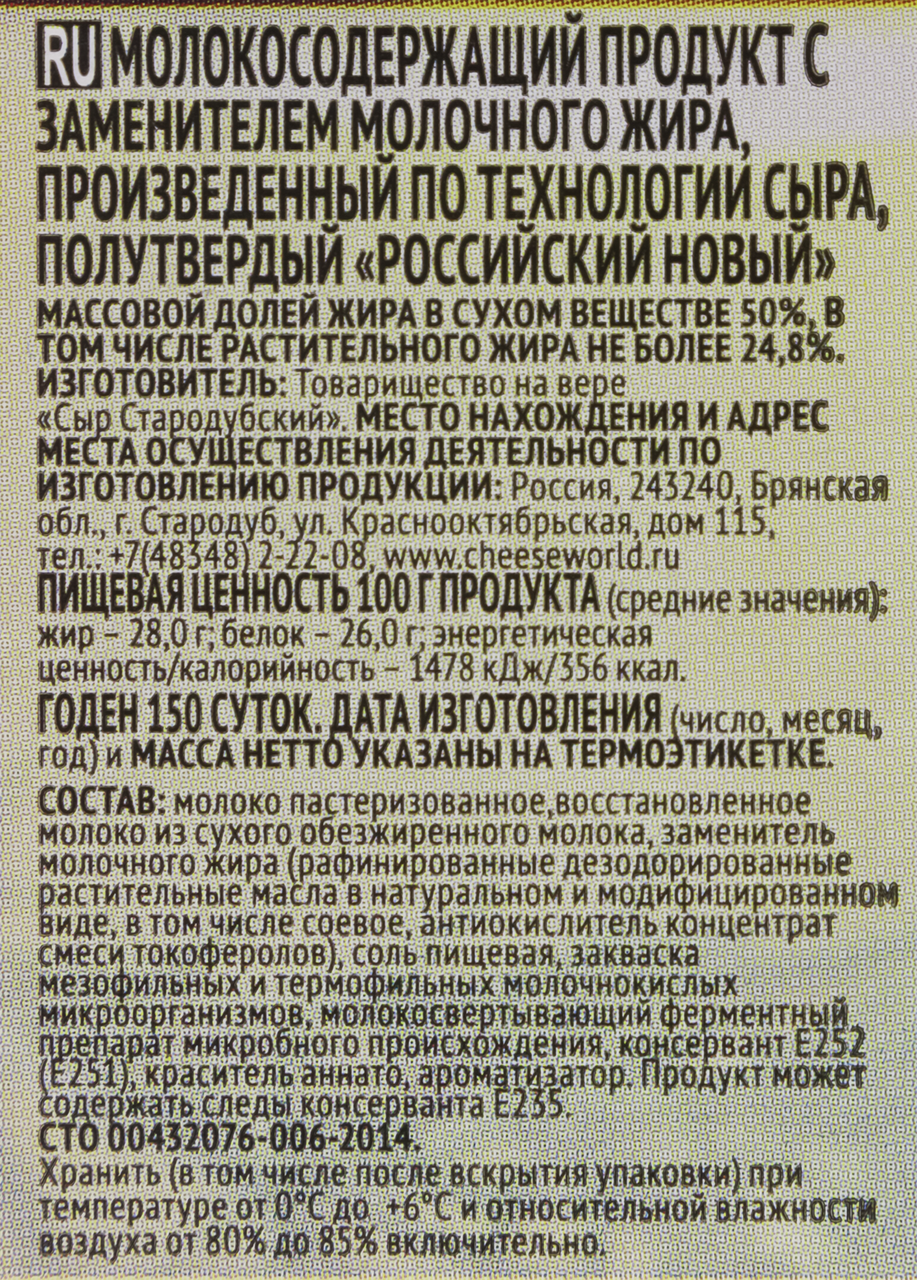 Продукт сырный Стародуб Российский новый 50%, ~1кг