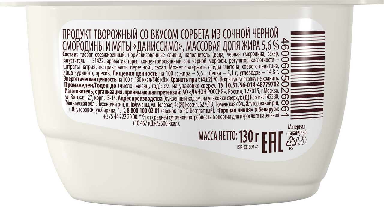 Творожок Даниссимо со вкусом сорбета из черной смородины 5.6% 130 г
