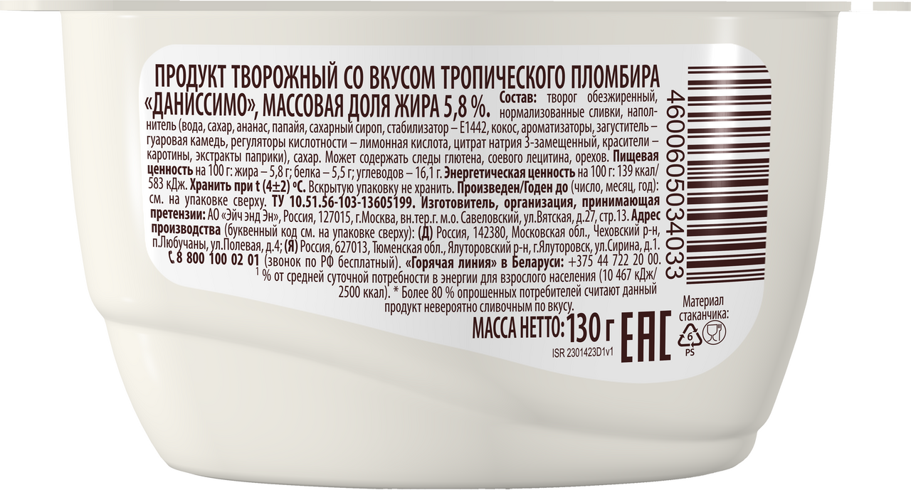 Продукт творожный Даниссимо Тропический пломбир 5.8%, 130г