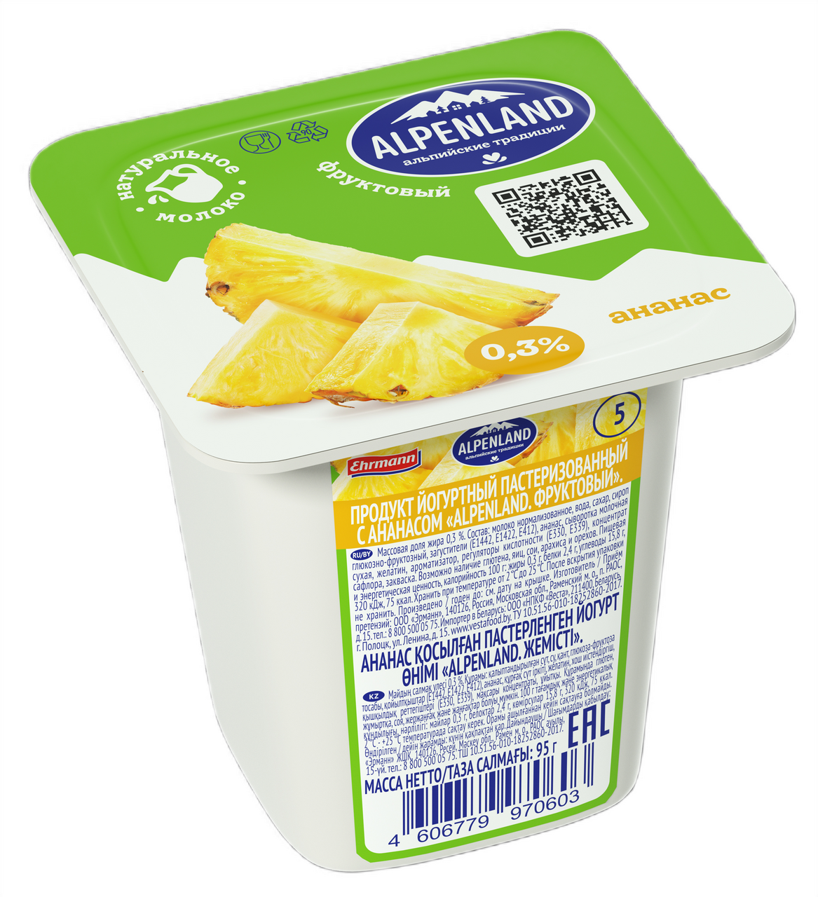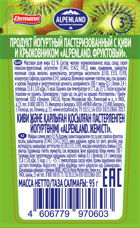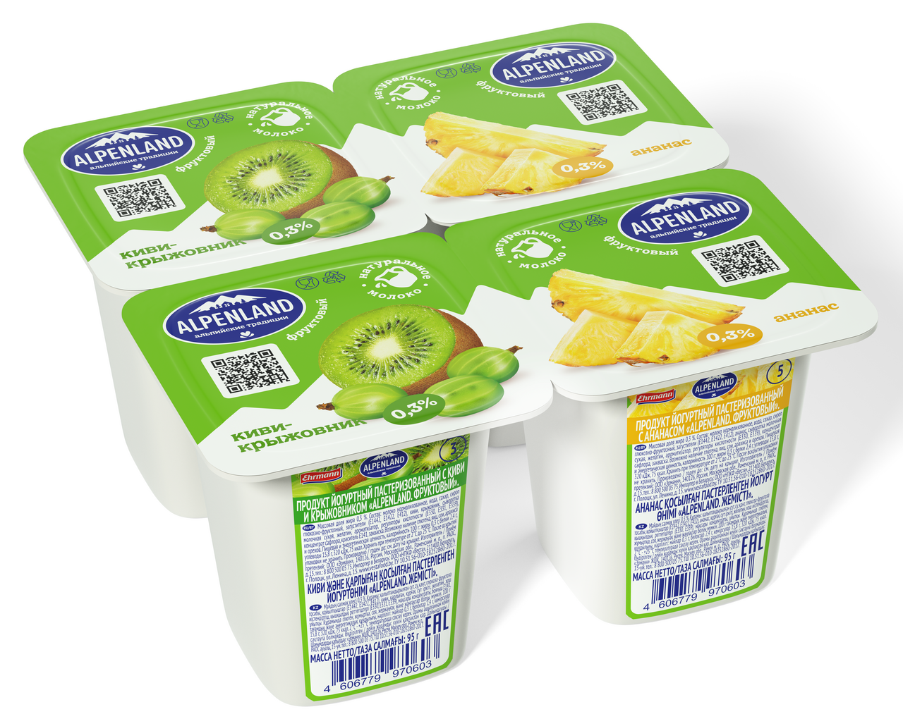 Продукт йогуртный Alpenland киви, крыжовник и ананас 0.3%, 95г