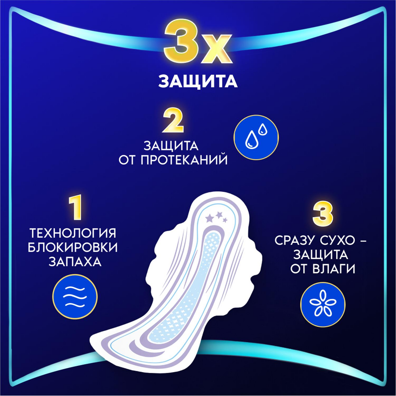 Высококачественные гигиенические средства, которые выручат вас во время критических дней. Ультравпитывающий внутренний слой запирает влагу изнутри, а защитные боковые барьеры предотвращают протекание. Прокладки надежно крепятся на нижнем белье, а благодаря удлиненной задней части и высокому уровню впитываемости отлично подходят для ночного использования. Верхний слой выполнен из мягкого материала, который нейтрализует неприятные запахи. Прокладки не раздражают кожу, что подтверждено дерматологами. Тонкие и удобные, они подстраиваются под движения вашего тела, не доставляя даже малейшего дискомфорта. Индивидуальная упаковка позволяет гигиенично утилизировать изделие после использования.