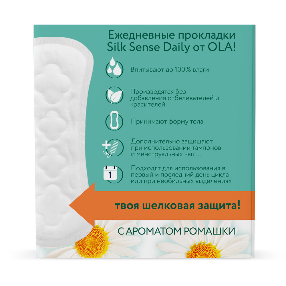 Прокладки ежедневные Ola! Silk Sense Deo с ромашкой, 60шт