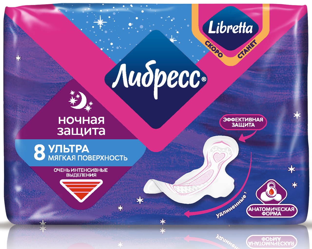 Прокладки гигиенические Либресс Ультра Ночные с мягкой поверхностью, 8шт