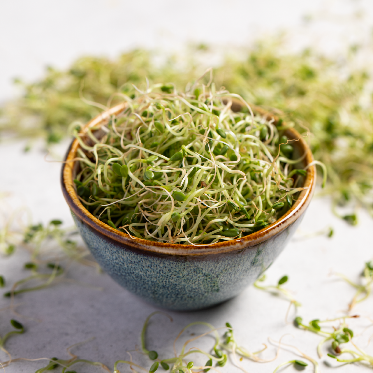 Специально подобранная комбинация проростков пажитника, красного клевера, люцерны, брокколи колабрийской и цикория, направленная на поддержку женского здоровья и общего благополучия. Этот продукт богат витаминами A, C, E, K, а также минералами, такими как кальций, магний, железо и цинк, которые укрепляют иммунную систему, улучшают состояние кожи и волос, поддерживают гормональный баланс и нормализуют обмен веществ. Проростки помогают уменьшить симптомы менопаузы, укрепить кости и улучшить пищеварение благодаря высокому содержанию клетчатки и антиоксидантов. Регулярное добавление этих проростков в рацион способствует оздоровлению организма, улучшению настроения и поддержанию энергии, что делает этот микс незаменимым для каждой женщины, стремящейся к здоровому и гармоничному образу жизни.