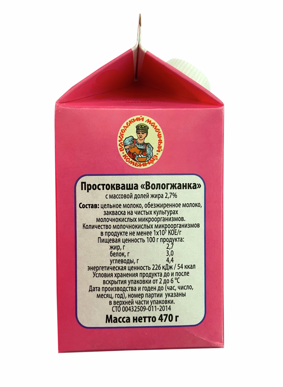 Приготовлена по старинному русскому рецепту. Продукт имеет кисловатый вкус, напоминающий кефир, и густую консистенцию. Он легко усваивается, помогает работе пищеварения и насыщает организм полезными веществами. Благотворно влияет на процесс пищеварения и нормализует работу желудочно-кишечного тракта. Благодаря пробиотикам простокваша повышает количество полезных бактерий в кишечнике. Простоквашу употребляют в чистом виде, иногда сдабривают другими ингредиентами. Отлично подойдут мед, ягоды, варенье, какао-порошок или корица. На простокваше делают тесто для блинов, манник, оладьи и многое другое. Выпечка получается невероятно нежной и вкусной.