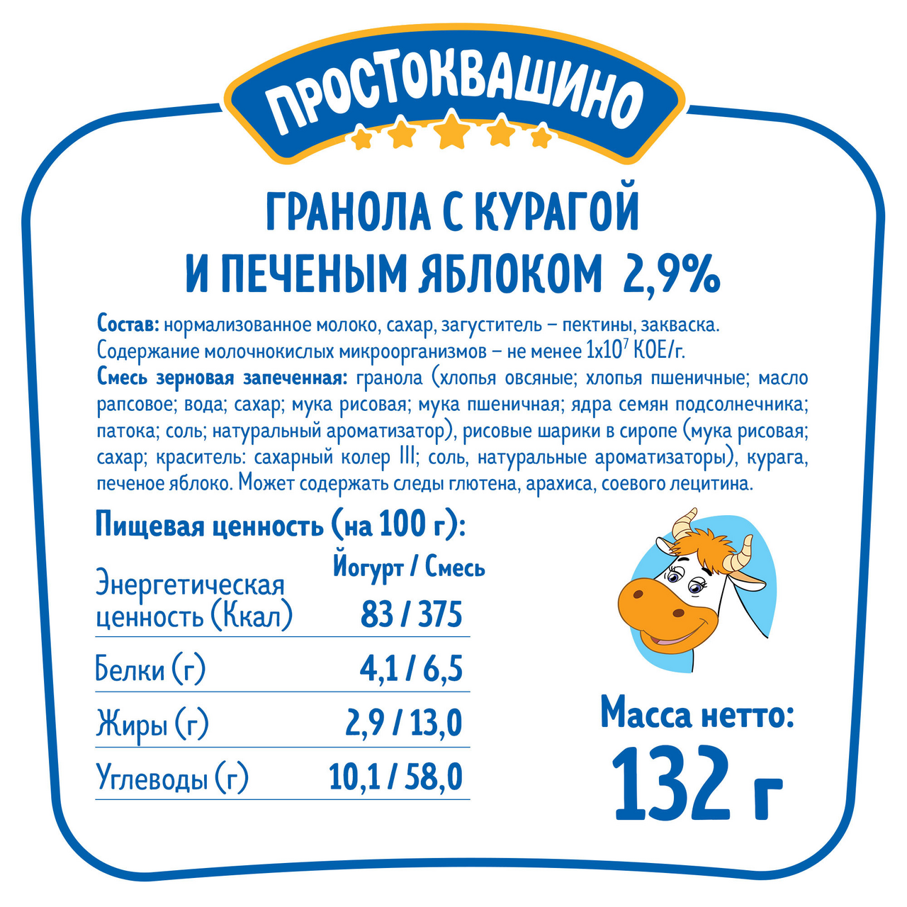 Йогурт Простоквашино с гранолой, курагой и печеным яблоком 2.9%, 132г