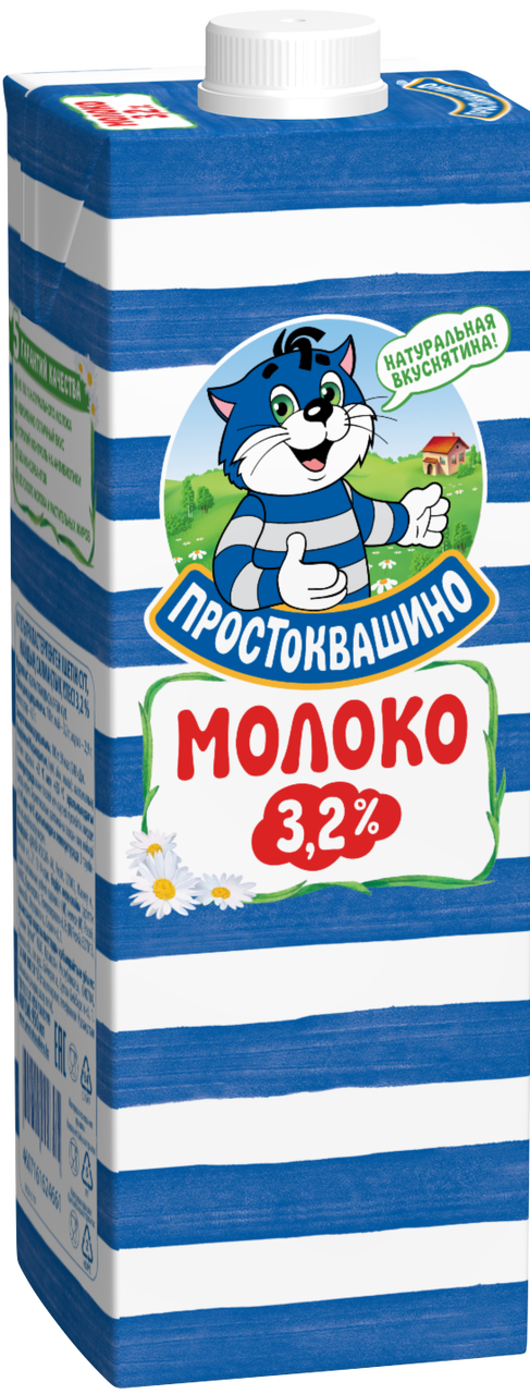 Молоко "Простоквашино" ультрапастеризованное - вкусный и качественный продукт для всей семьи! Продукт обладает 5 гарантиями качества: 1. Из 100% натурального молока. 2. Неизменно отличный вкус. 3. Строгий контроль на антибиотики. 4. Без консервантов. 5. Без сухого молока и растительных жиров. Молоко Простоквашино отлично дополнит ваш завтрак, его можно добавить в кофе или чай или выпить на ночь. Кроме того, оно отлично подойдет для готовки блинчиков, каш и множества других любимых домашних блюд. Пейте Молоко Простоквашино с удовольствием!