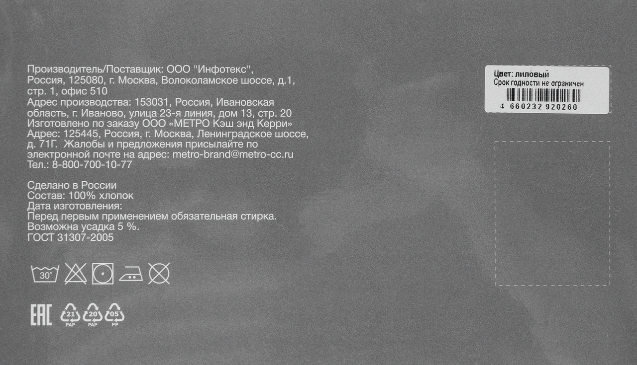 - Тип упаковки Пакет