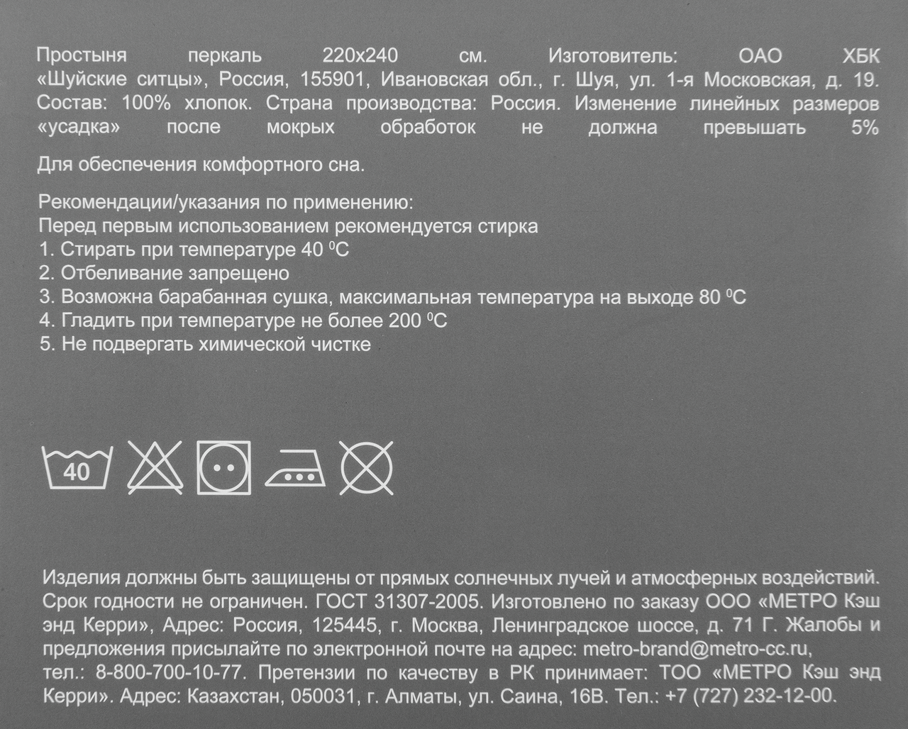 Tarrington House Простыня зеленая перкаль на резинке, 220 x 240 см имеет хорошую плотность, поэтому отличается высокой износостойкостью. Резинка прошита по торцевым сторонам с переходом на продольные. Главной особенностью перкаля является специальное плетение нитей, что обеспечивает ткани особую прочность и долговечность. Хлопок – экологически чистый и безопасный материал. Он обладает антистатическими свойствами, к тому же хорошо впитывает и выводит влагу. Легкая и мягкая ткань отличается простотой в уходе. После первой стирки она дает небольшую усадку. При соблюдении условий стирки и ухода постельное белье со временем не теряет своего насыщенного оттенка. Не допускается использование отбеливающих и других агрессивных моющих веществ. Перед стиркой изделие необходимо выворачивать на изнанку. Сушка возможна как в горизонтальном, так и в вертикальном состоянии. В процессе сушки не рекомендуется попадание на ткань прямых лучей солнца, что может привести к быстрому выгоранию.