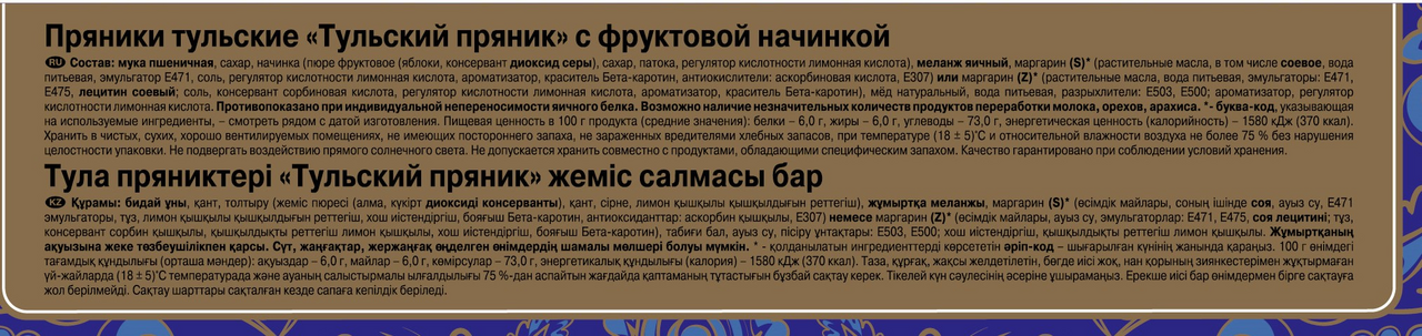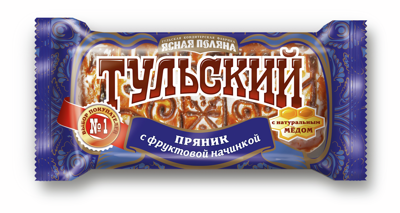 Тульский пряник с начинкой из фруктового повидла, покрытый тонкой белесой гладью сахарной глазури. Пряную сладость ароматного печатного коржа дополняет легкая фруктовая кислинка густой начинки. Настоящий тульский пряник, гордость региона и визитная карточка фабрики Ясная Поляна. Вкус, достойный царской трапезы.