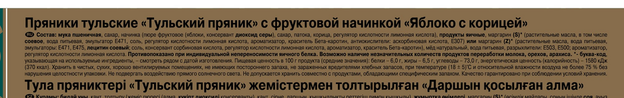 Знакомый с детства каждому вкус тульского пряника навевает теплые воспоминания о счастливом времени, проведенном в кругу близких. Сладкое лакомство к чаю или оригинальный сувенир для родственников и друзей - это фирменные пряники из Тулы. Что может быть лучше чаепития с ароматным, тающим во рту пряником, изготовленным по традиционным рецептам тульских мастеров? Вы, несомненно, оцените яркий оригинальный вкус и поймете, за что его вот уже много веков любят все, от мала до велика. Вкусное лакомство родом из детства с обновленной начинкой. Сочетание яблока с корицей напоминает об ароматной бабушкиной шарлотке. Содержащийся в рецепте мед придает выпечке неповторимую сладость. Пряник прекрасно подходит для употребления с чаем. Дети любят лакомится ими запивая молоком или кефиром.
