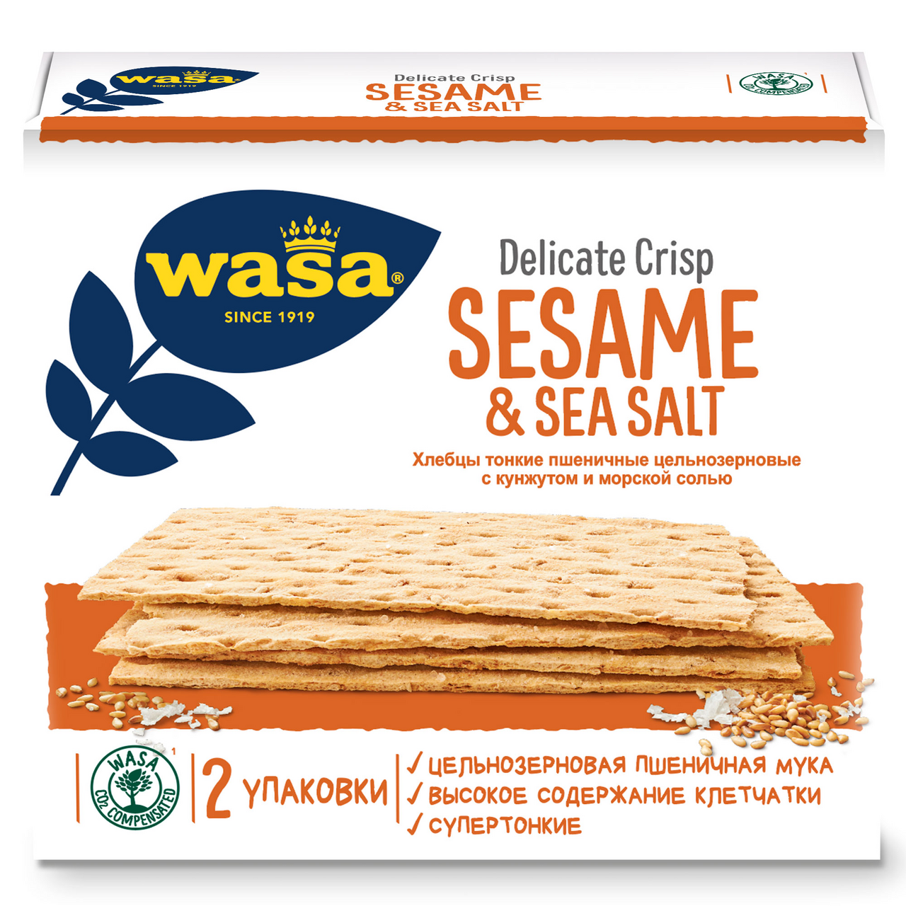 Хлебцы Wasa Delicate Crisp пшеничные тонкие цельнозерновые с кунжутом и морской солью, 190г