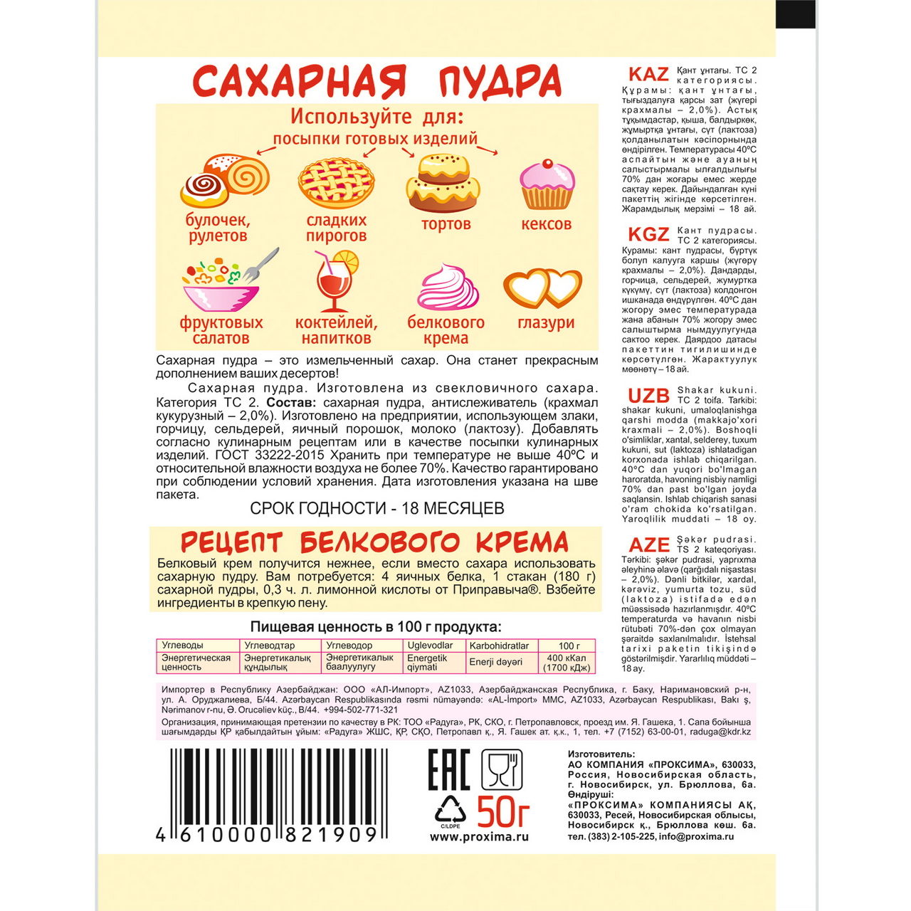 Сахарная пудра, крахмал кукурузный.
