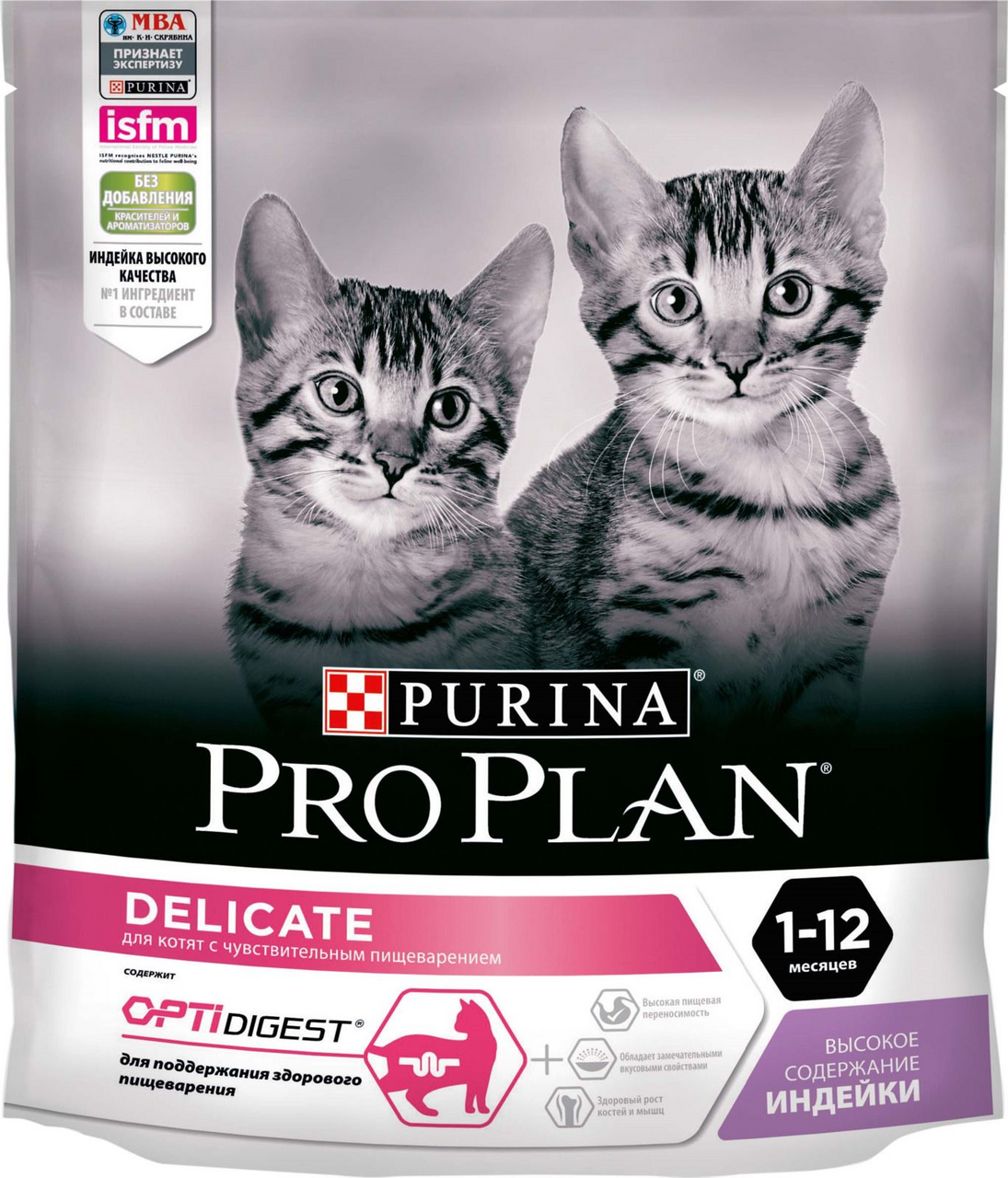 Корм сухой Pro Plan Delicate для котят с чувствительным пищеварением с индейкой, 400г