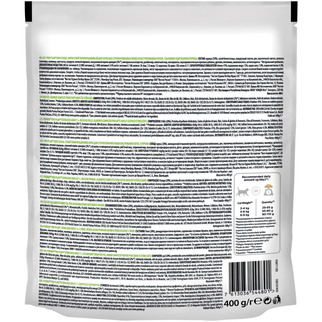 Корм сухой Pro Plan Sterilised для кошек с курицей, 400г