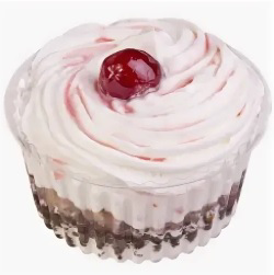 Бисквитное пирожное с вишневой наливкой и сметанным кремом.
