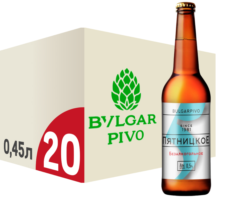 Пиво Булгарпиво Пятницкое безалкогольное, 0.45л x 20шт