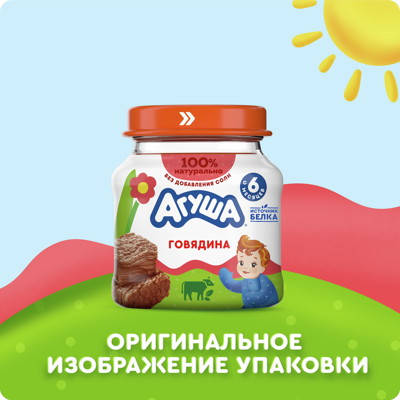 Пюре мясное детское Агуша Говядина с 6 месяцев, 80г
