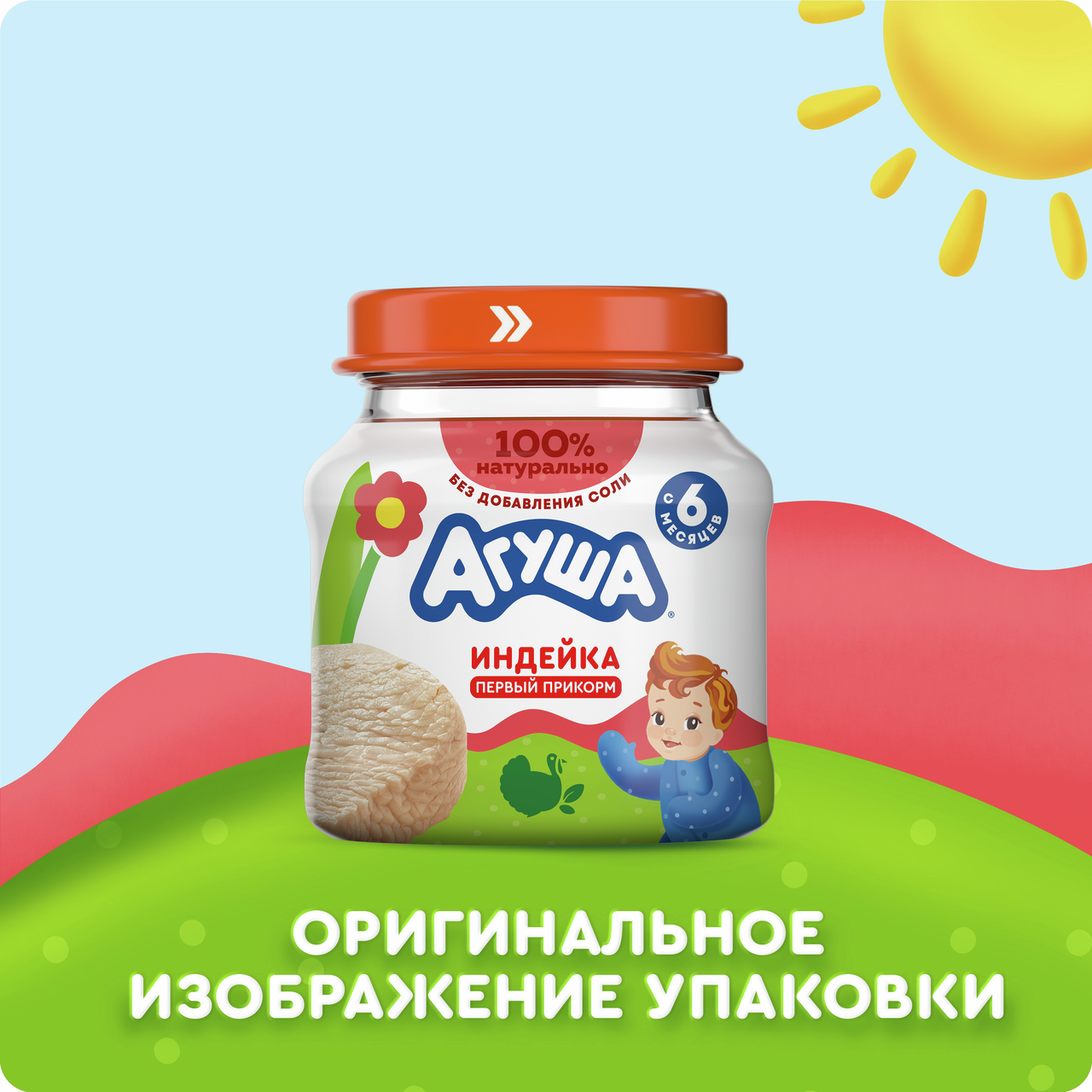 Пюре мясное детское Агуша Индейка с 6 месяцев, 80г