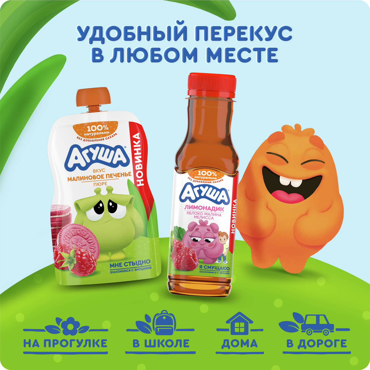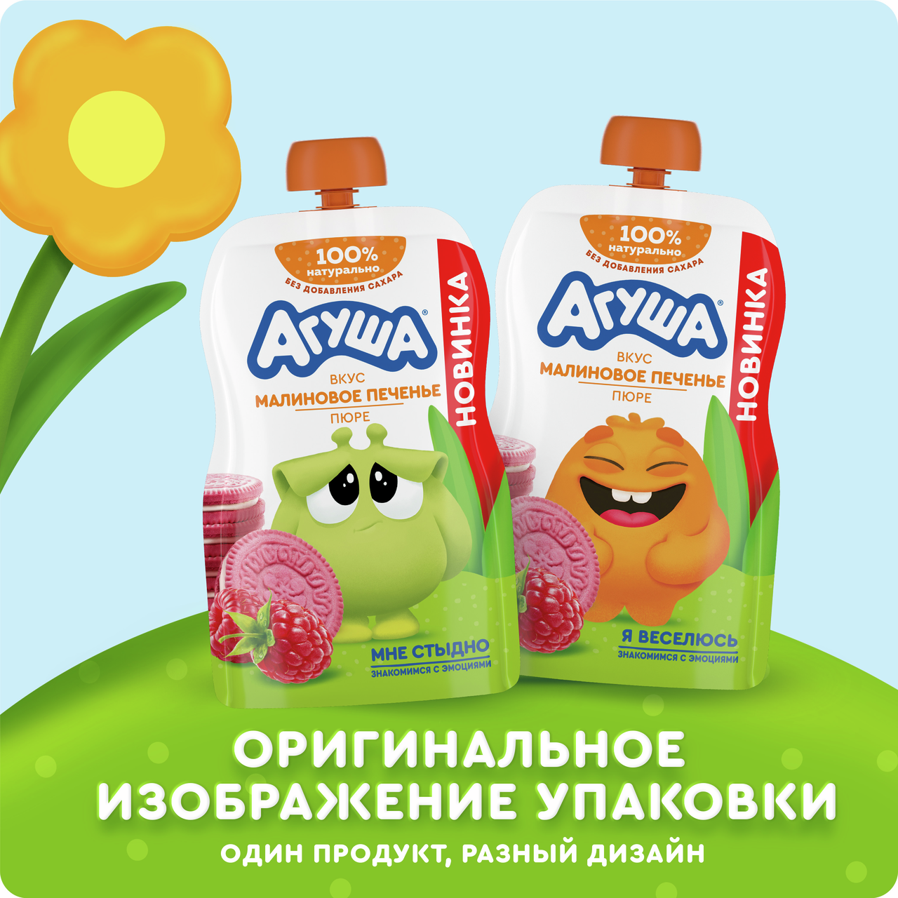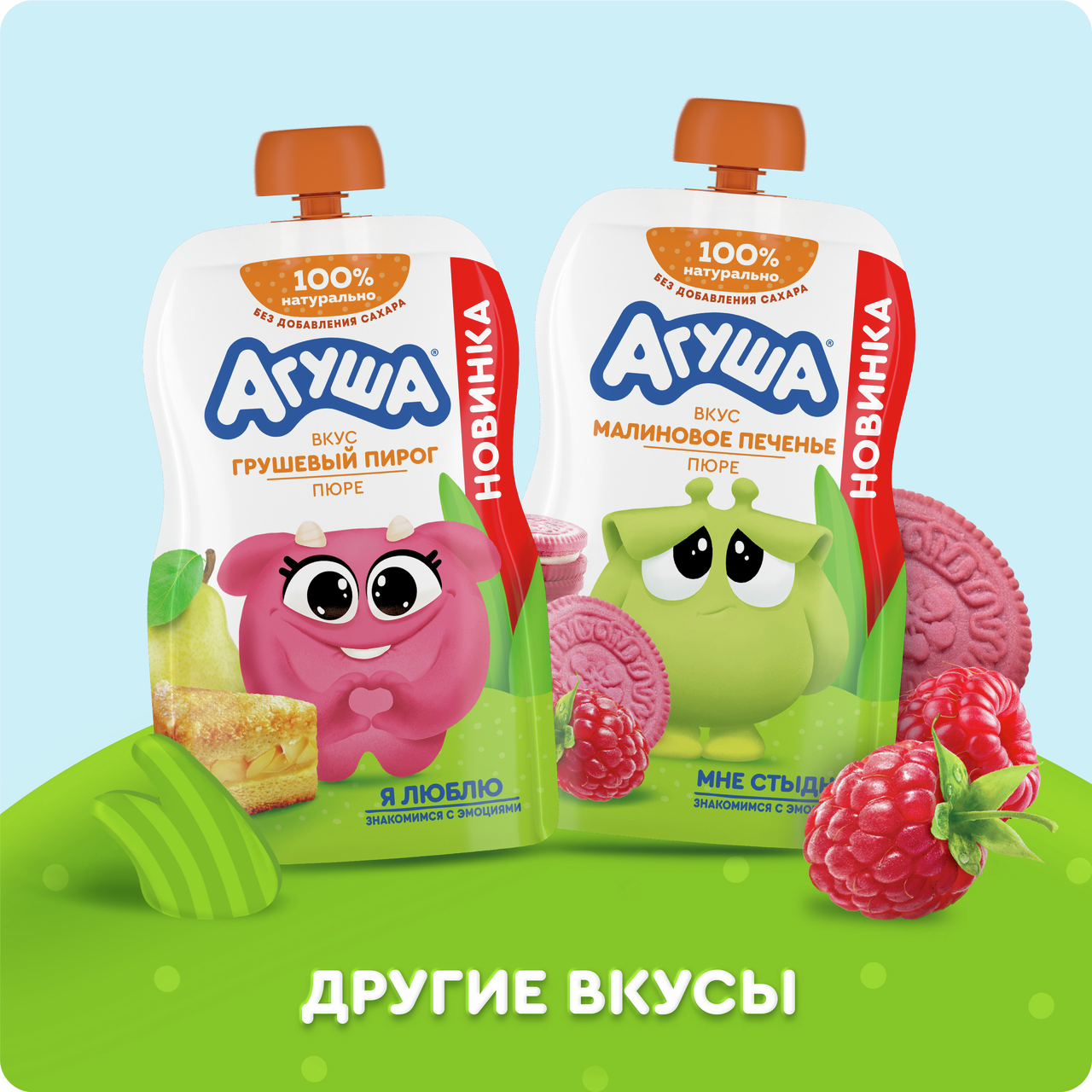 Пюре детское фруктовое Агуша - это 100% натуральный десерт, детское питание в мягкой упаковке для дома или прогулки. Забавные герои на упаковке знакомят малыша с эмоциями. Это фруктовое пюре без сахара содержит яблочное пюре, пюре из малины. Пюре из фруктов от Агуши произведено без добавления крахмала, консервантов и красителей. Тщательно отбираем поставщиков сырья и контролируем качество на всех этапах производства.