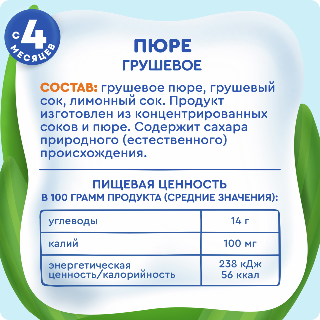 Грушевое пюре Агуша для детей с 4 месяцев в мягкой упаковке. Возьмите на прогулку вкусный перекус от Агуша!