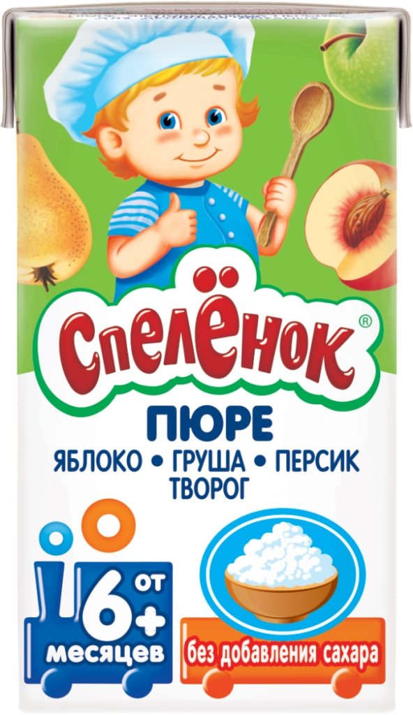 Пюре СПЕЛЁНОК Яблоко/Груша/Персик/Творог, 125г