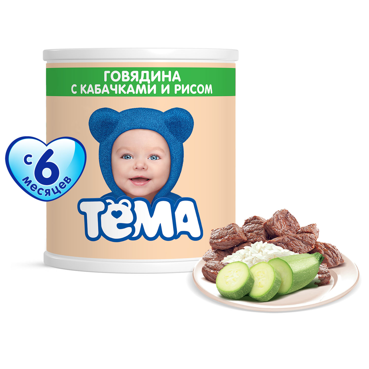 Пюре Тема Говядина с кабачками и рисом с 6 месяцев, 100г