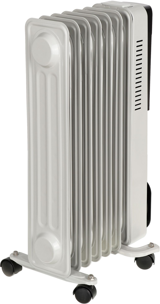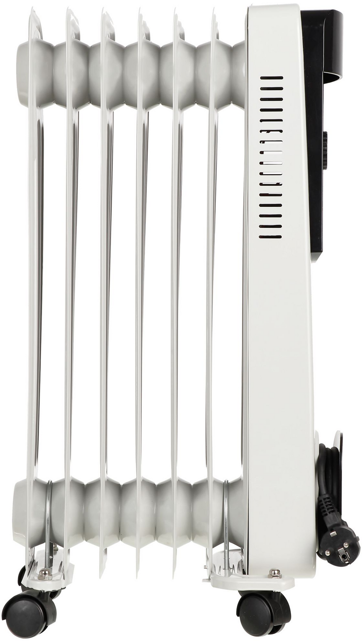 Корпус радиатора закрыт со всех сторон, поэтому прибор можно использовать даже в детской комнате и в помещении с домашними животными. Для лучшей мобильности предусмотрены четыре колесика, которые вращаются на 360 градусов и позволяют свободно перемещать масляный радиаторпо квартире. Питание осуществляется от сети 220 Вт с помощью сетевого шнура.