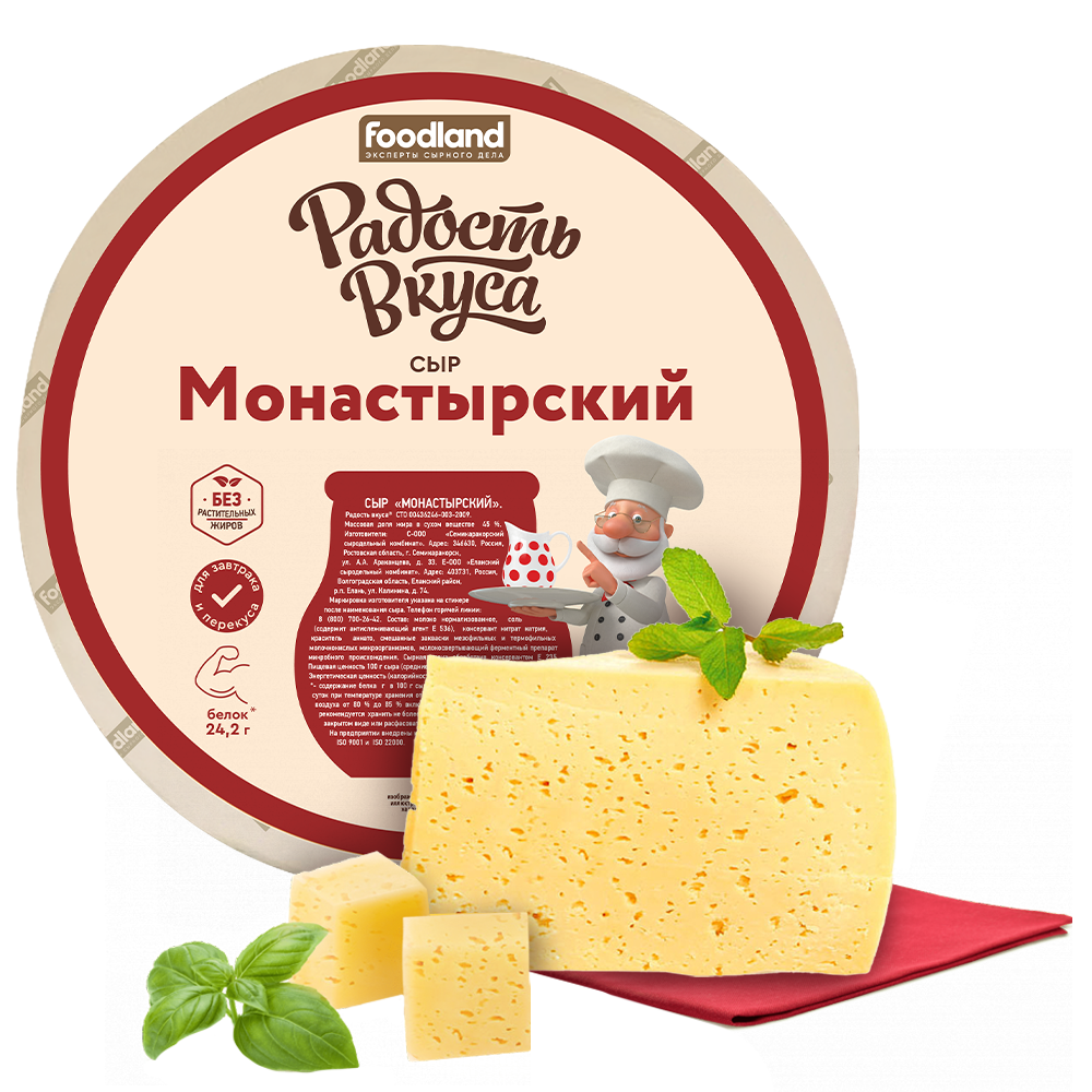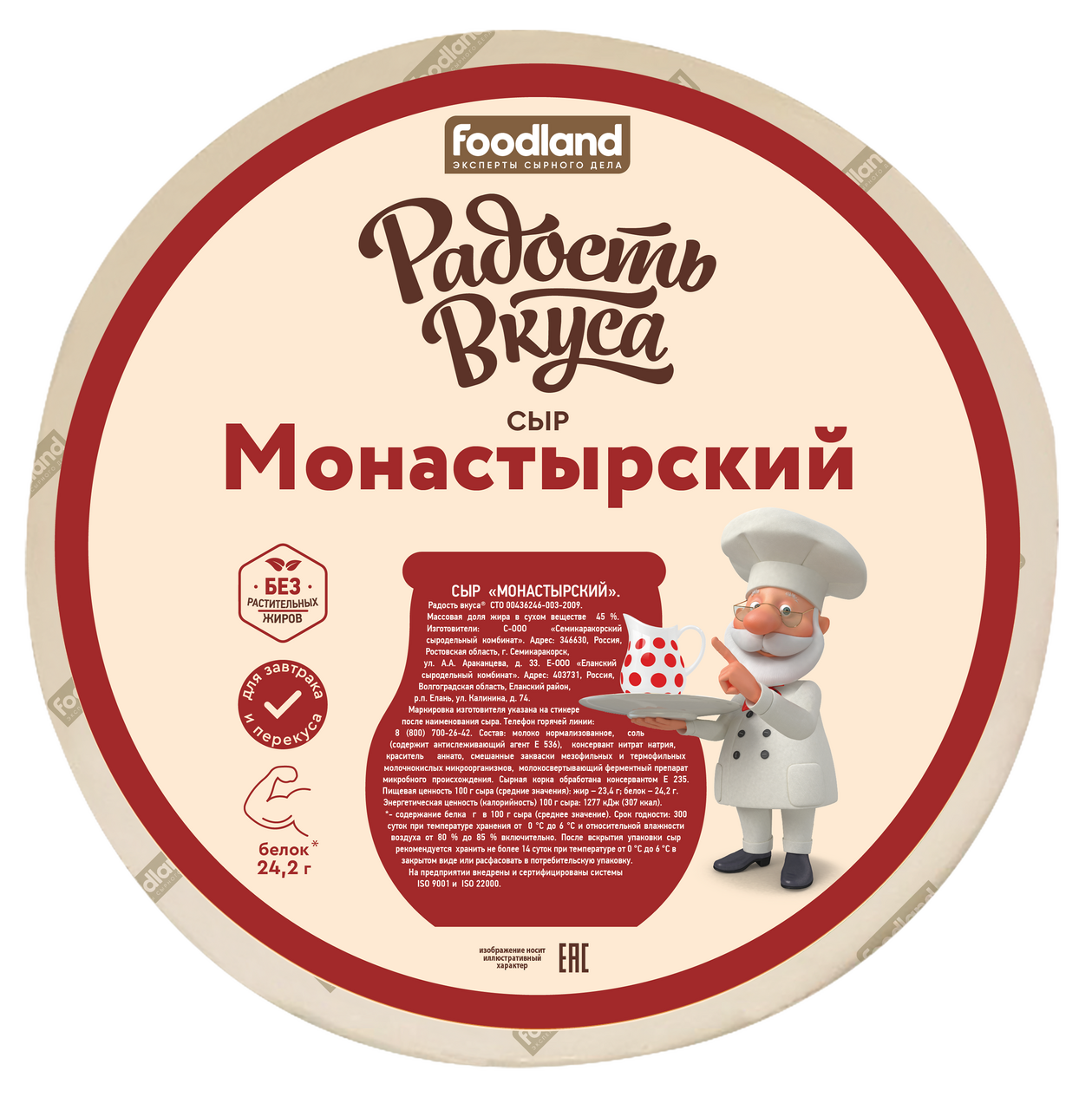 Сыр Радость вкуса Монастырский полутвердый 45%, ~6.8кг