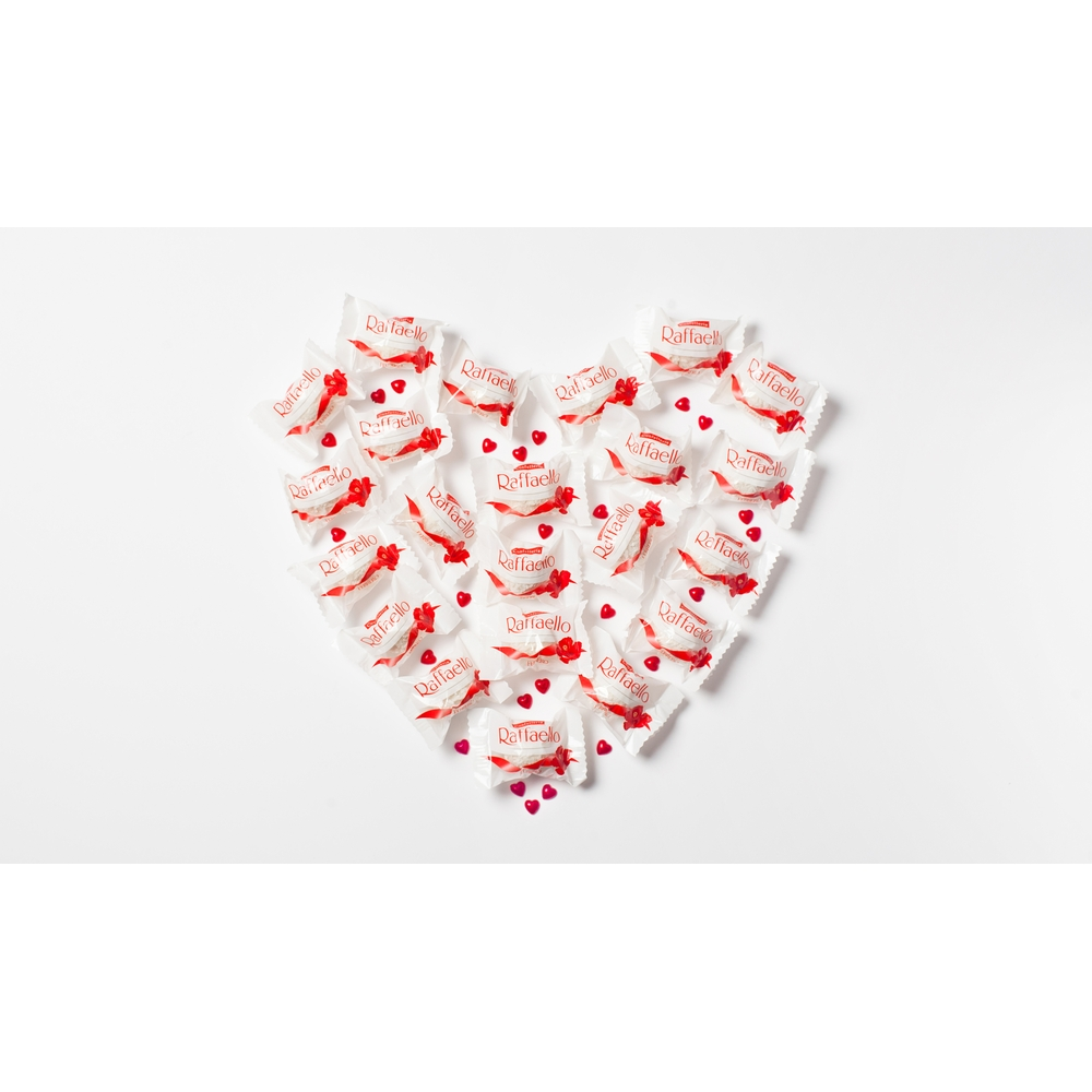 Уникальный рецепт Raffaello - это гармония ингредиентов, отобранных с особой заботой: сладкий белый миндаль и отборный кокосовый орех с тропических островов, придают непередаваемую нежность вкусу. Raffaello - истинное удовольствие.