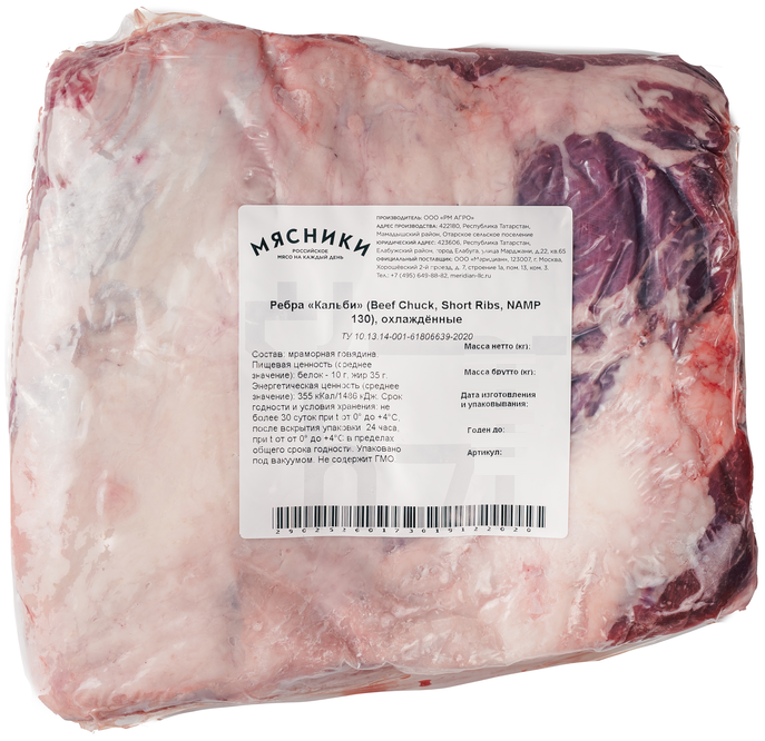 Ребра Мясники Кальби говяжьи нерезаные охлажденные, ~1.9кг