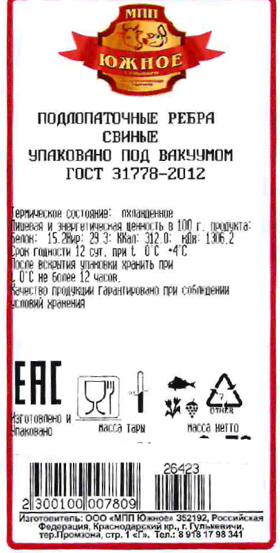 Ребро свиное МПП Южное подлопаточное охлажденное, ~2кг