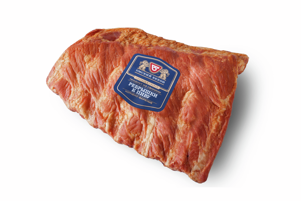 Ребрышки Омский бекон к пиву варено-копченые, ~500г