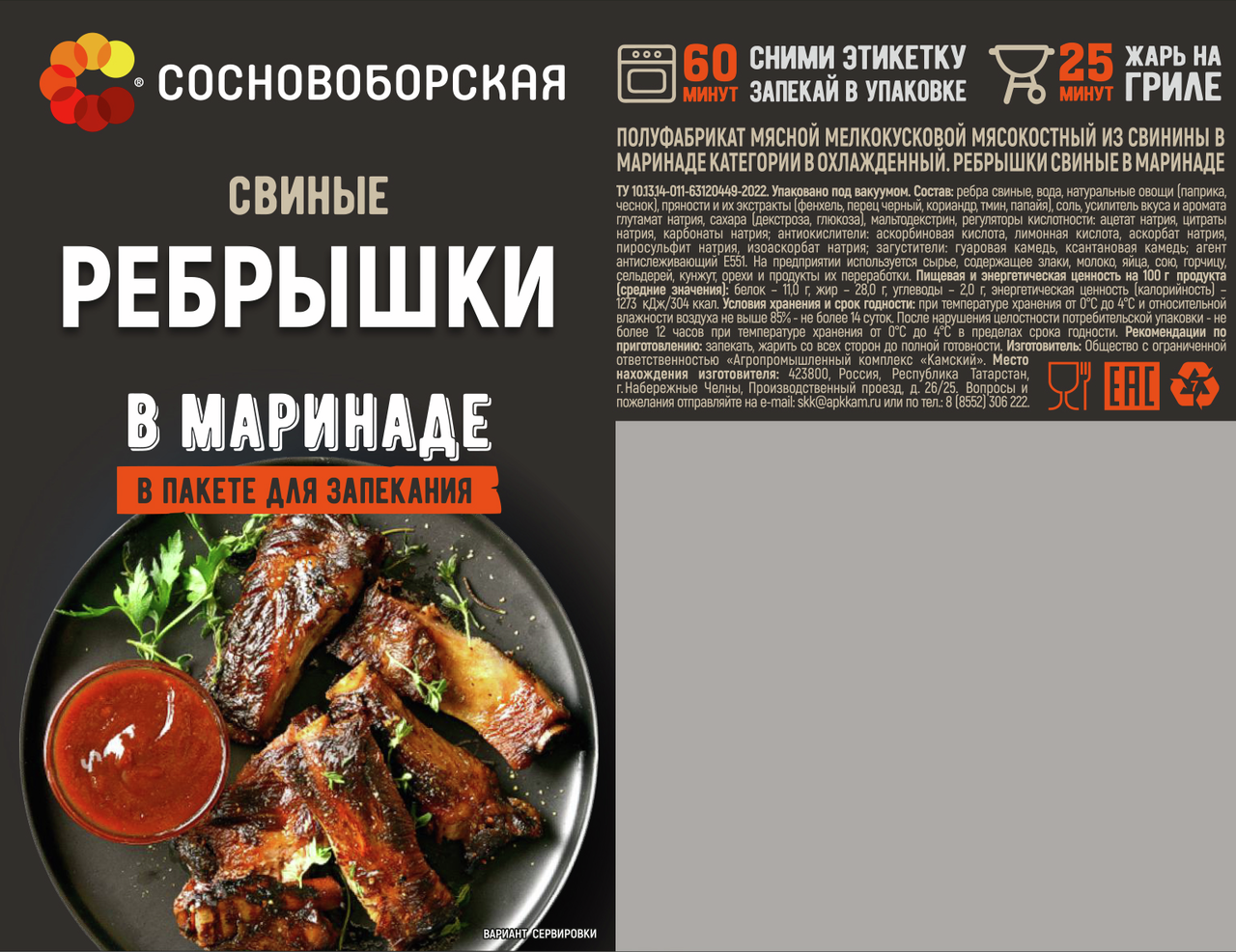 Ребрышки свиные Сосновоборская в маринаде охлажденные, ~1кг