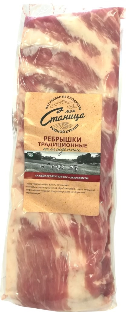 Ребрышки Моя станица традиционные охлажденные — это полуфабрикат, готовый к термической обработке. Мясо можно приготовить целым куском, разрезать или запечь на гриле или решетке-барбекю и подать с тушеными или овощами, а также кисло-сладким соусом. Нежная мякоть на ребрышках с прожилками молочно-белого жира сохраняет сочность после тепловой обработки. Запекающееся мясо приобретает хрустящую и аппетитную ароматную корочку. Свинина быстро переваривается, положительно влияет на пищеварение и повышает иммунитет. Аминокислоты в составе продукта снимают воспаление и действуют в качестве антиоксидантов. Благодаря отсутствию заморозки мясо сохраняет максимум полезных веществ и микрокомпонентов.