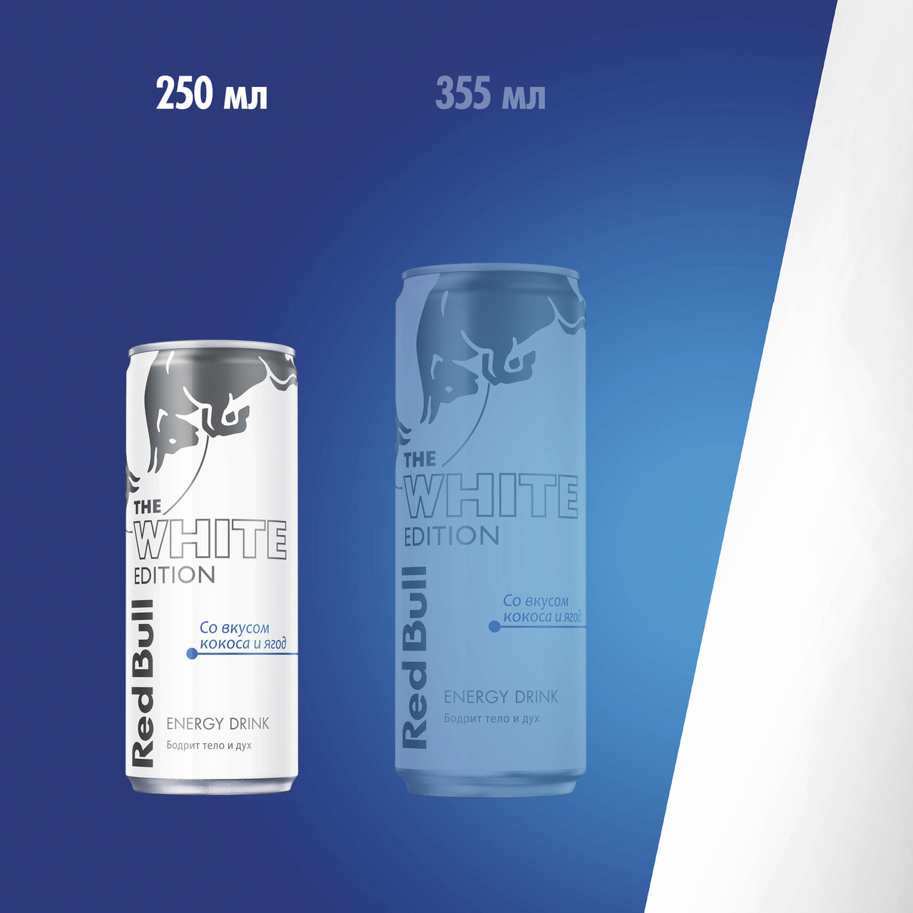 Red Bull White Edition — безалкогольный энергетический газированный напиток со вкусом экзотического кокоса и сочных ягод. Энергетические напитки Red Bull содержат ингредиенты высокого качества: кофеин, таурин, витамины B, сахар и воду из альпийских регионов. В одной банке Red Bull 250 мл содержится столько же кофеина, сколько в чашке кофе такого же объема. Количество сахара в энергетическом напитке Red Bull сопоставимо с уровнем сахара в яблочном или апельсиновом соке – 11г на 100 мл. Банки Red Bull сделаны из 100% перерабатываемого алюминия. Бодрит тело и дух.