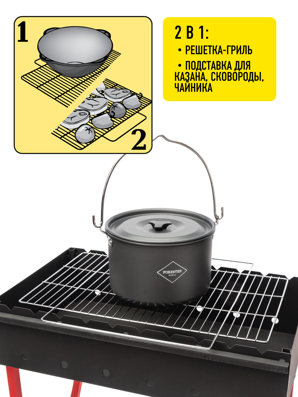 Решетка-гриль для мангала Forester 2 в 1 стальная с коррозионностойким покрытием, 48 х 28см