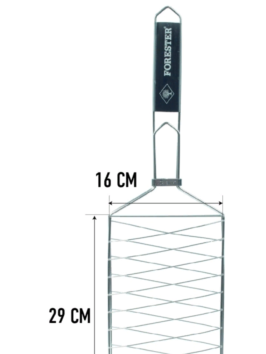 Решетка-гриль для рыбы Forester стальная с деревянной ручкой поставляется в удобном размере 29 х 16 х 2.5 см. Ее удобно держать одной рукой, переносить или хранить в любом удобном месте. Модель предназначена для приготовления сочной рыбы на гриле: лосося, трески, форели, скумбрии других. Можно использовать также различные специи, маринады и соусы для добавления вкуса и аромата готовому блюду. Конструкция решетки специально разработана для готовки рыбных шашлыков, кебаба, бургеров или стейков с желаемой степенью прожарки. Она обеспечивает равномерное приготовление, сохраняя все полезные питательные вещества в продуктах. На решетку можно выкладывать как отдельные кусочки рыбных филе, так и целые стейки. Прочный корпус решетки изг��товлен из долговечной стали. Материал обеспечивает стабильность и надежность во время эксплуатации. Он отличается повышенной ударопрочностью, хорошо противостоит коррозии, воздействию влаги, пыли, ультрафиолета и высоких температур. Сталь обладает отличной теплопроводностью, поэтому равномерно распределяет тепло по всей поверхности. Удобство и безопасность пользования обеспечивает деревянная ручка с удобным хватом. Она не нагревается и не утяжеляет руку. Модель также отличается удобством в использовании за счет гладкой поверхности. С нее без усилий устраняются любые загрязнения, остатки пищи, жир. Такой аксессуар можно брать с собой на пикники, вечеринки на открытом воздухе с мангалом или барбекю.