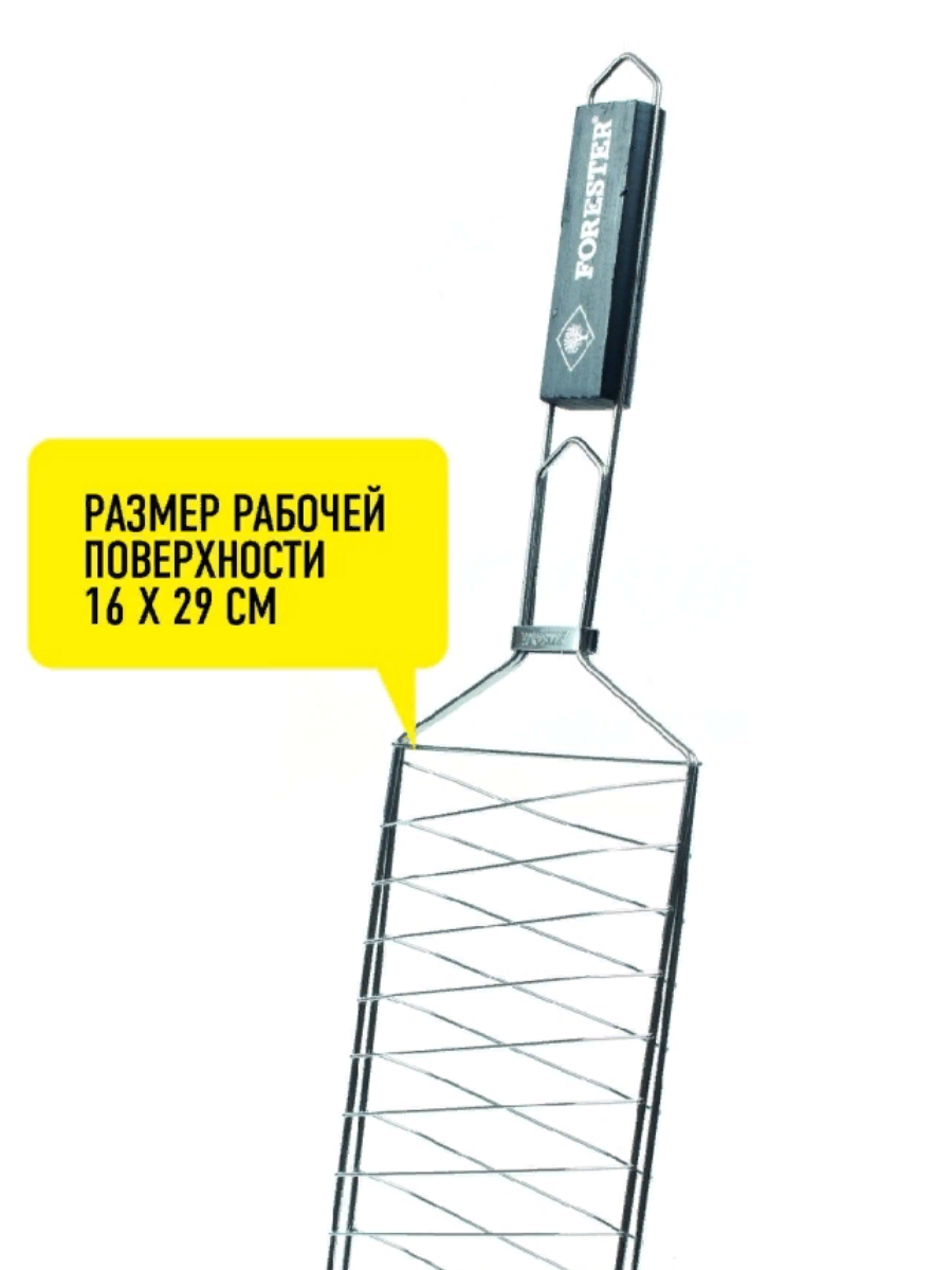 Решетка-гриль для рыбы Forester стальная с деревянной ручкой, 29 х 16 х 2.5см