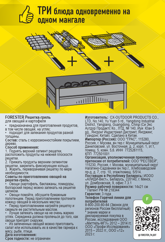Решетка-гриль Forester для овощей, 15.5 х 21 х 7.5см