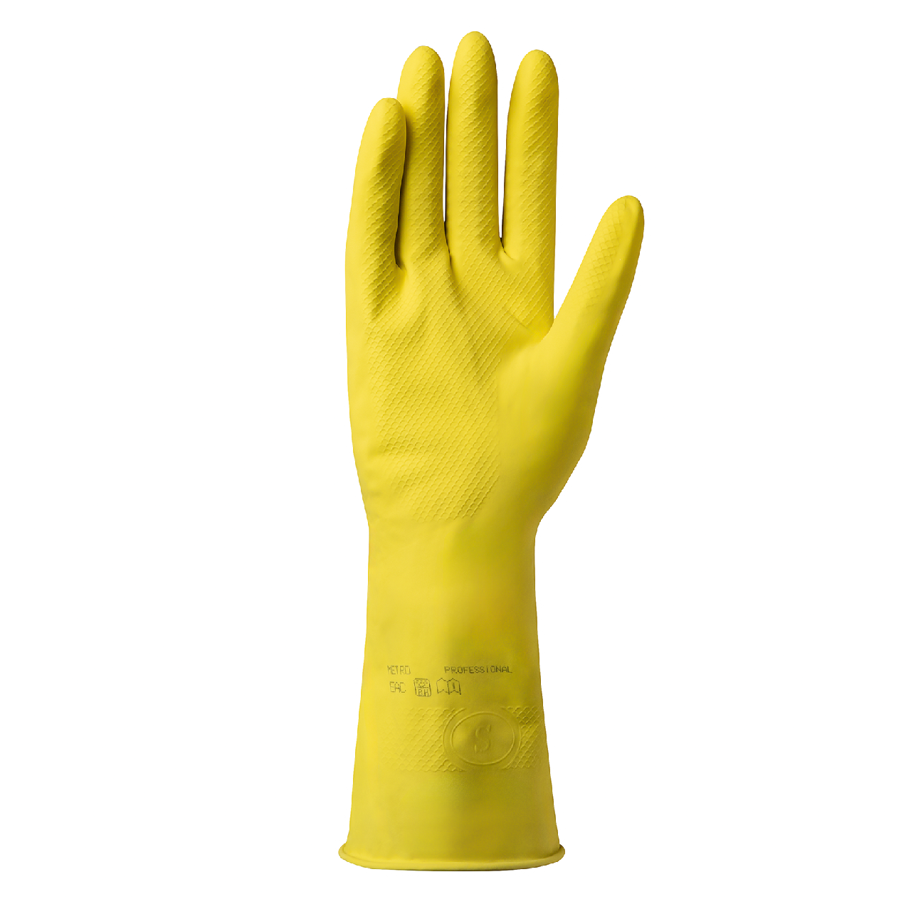 METRO PROFESSIONAL Перчатки хозяйственные латекс желтые S, 5 пар нашли широкое применение. Их приобретают для бытовых нужд и для различных предприятий. Изделие надежно защищает кожу от воздействия негативных факторов внешней среды. Они незаменимы при мытье посуды, при уборке или во время чистки сантехники. Их можно использовать в домашних условиях и в профессиональной деятельности. Резиновые перчатки удобны в применении. Они достаточно тонкие, чтобы обеспечить тактильную чувствительность при выполнении различных работ, что повышает ее эффективность. Правильно подобранный размер и наличие внутреннего хлопкового напыления обеспечивают максимальный комфорт и плотное прилегание. Рельефная поверхность на ладони необходима для прочного захвата скользких предметов. Она обеспечивает надежный контакт с гладкими поверхностями. Перчатки изготовлен из прочного натурального латекса. Такой материал является гипоаллергенным. Он служит надежной защитой от агрессивных химических средств. Благодаря длине изделие защищает как кисти рук, так и запястья. Оно предназначено для многоразового использования. С перчаток легко смыть грязь, налипшую во время уборки или другой деятельности. После правильной сушки они сохраняют форму и готовы к последующему использованию.