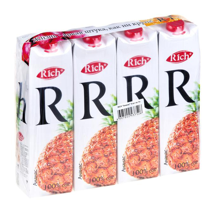 Сок Rich ананасовый с мякотью 100% 1л .Восстановленный. С мякотью. Гомогенизированный. Для питания с 3-х лет.Изготовлен из концентрированного ананасового сока.Без добавления консервантов и красителей.Пищевая ценность в 100г: углеводы не менее 13г.Энергетическая ценность: 52ккал/221кДж.Перед употреблением встряхнуть.Хранить при температуре 0'C до +25'C. Открытую упаковку хранить при 2'C до +6'C в холодильнике не более суток.Срок годности: 1 год.