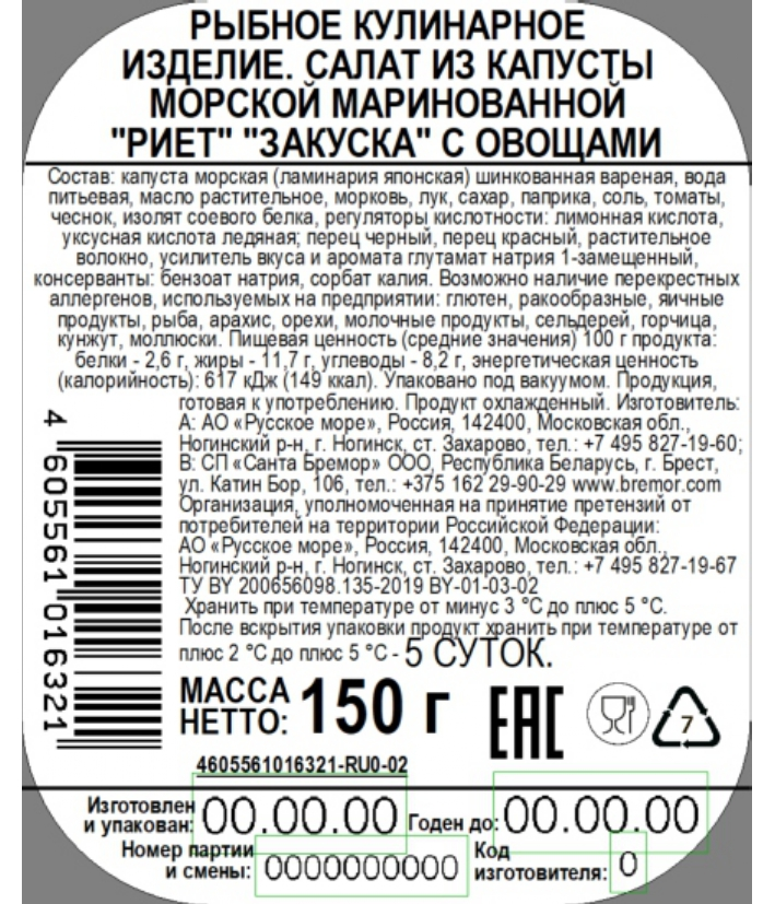 Нежный риет с овощами, где основой выступает маринованная морская капуста с пряностями и специями. Разнообразие ситуаций потребления: намазка, спред, гарнир, самостоятельно блюдо. Готовое блюдо, которое подойдет как для повседневного, так и для праздничного стола. Благодаря своему пикантному вкусу оно внесет приятное разнообразие в привычное меню и будет полезно для здоровья. Морская капуста богата витаминами из группы В, С, Е, содержит фосфор, железо, натрий, магний и другие важные элементы.
