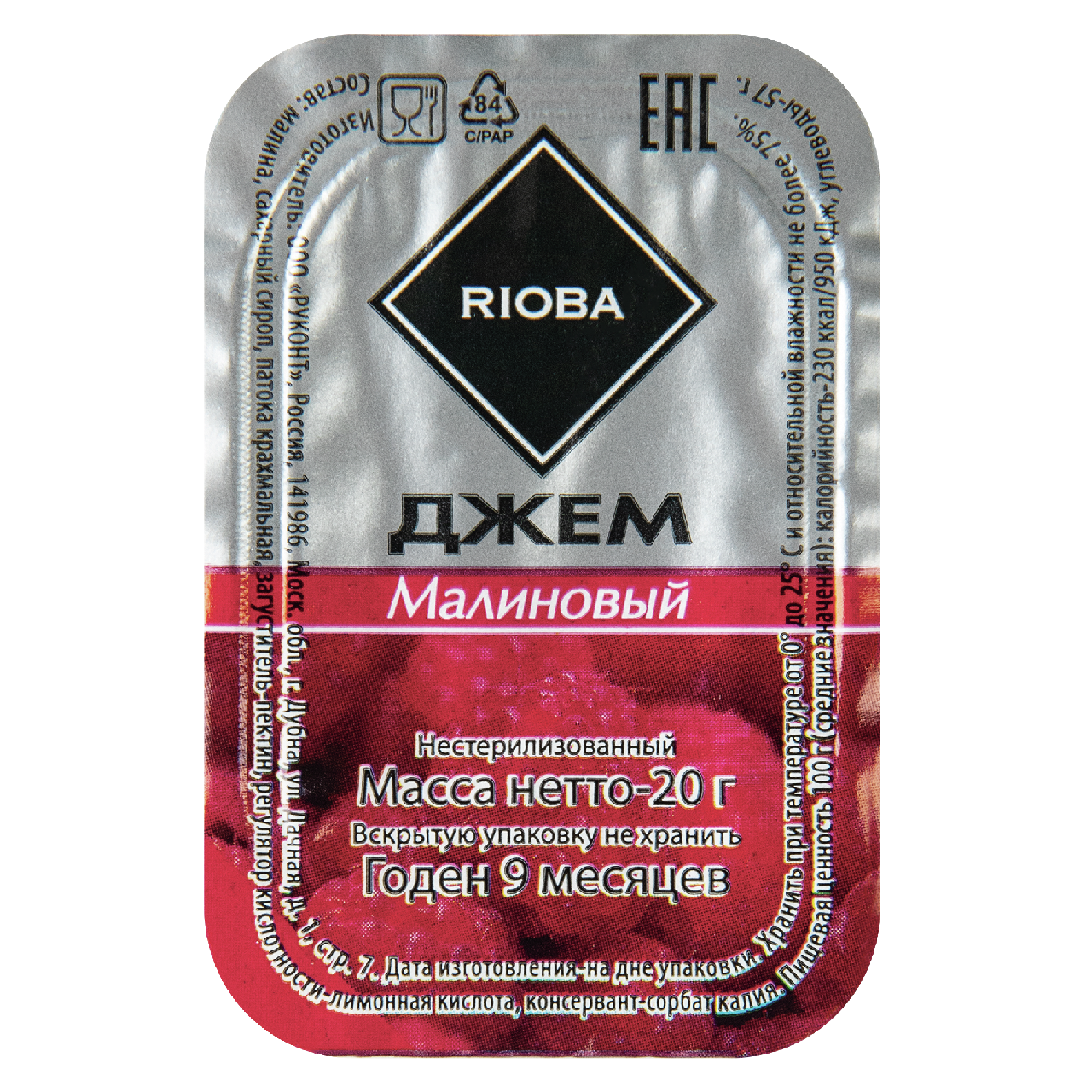 RIOBA Джем порционный Малина (20г х 20шт), 400г