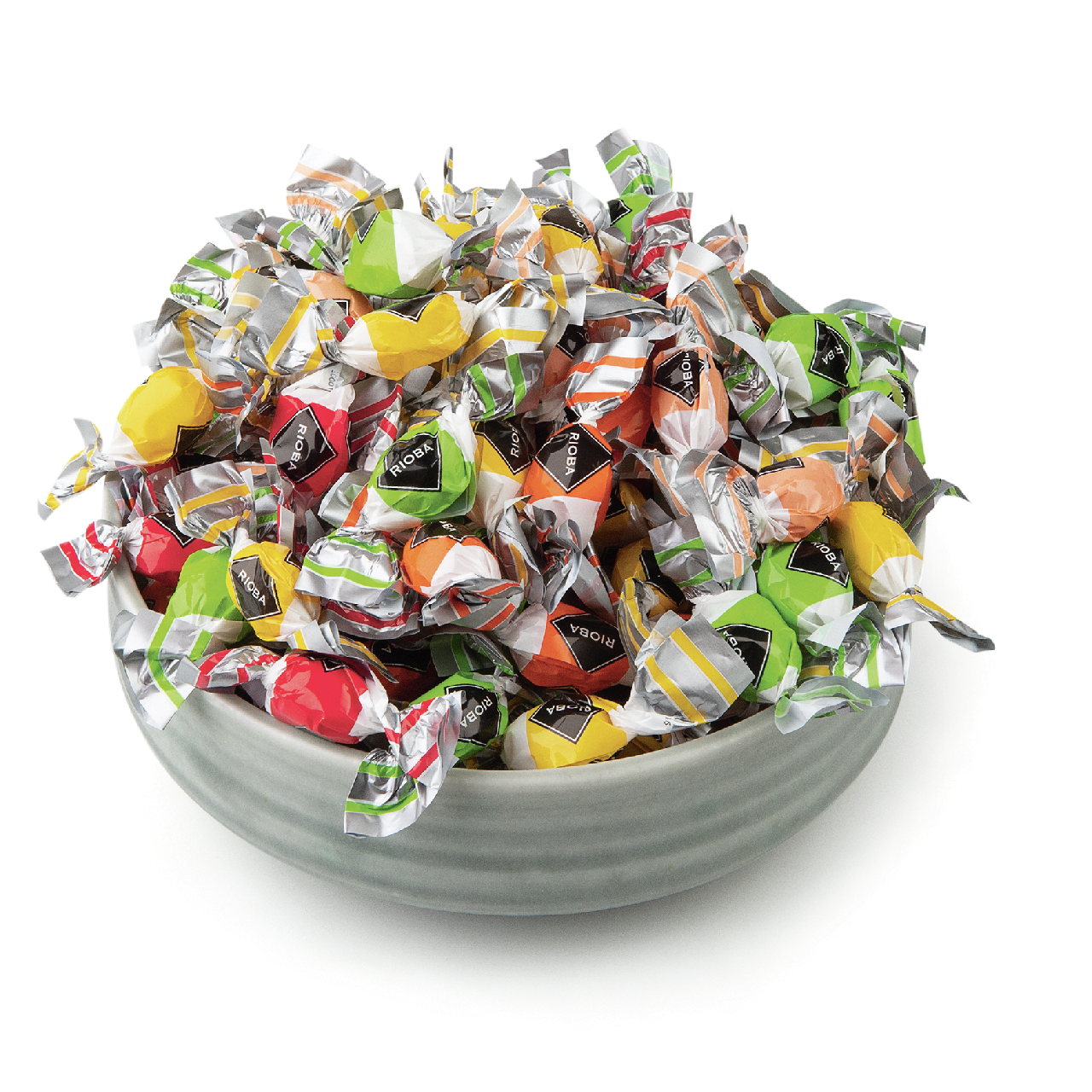 Карамель фруктовая мини Rioba, 500 г подарит вам хорошее настроение. Внутри яркой фирменной упаковки вы найдете маленькие аккуратные карамельки, которые принесут вам и вашим клиентам радостные сладкие минуты. Угостите конфетами Rioba гостей отеля или кафе. В любое время года сладости своим фруктовым вкусом напомнят им о лете. Кажется, что это не карамель, а подслащенные кусочки настоящих свежих фруктов. На первый взгляд кажется, что полкилограмма лакомства хватит надолго. Но стоит только открыть пакет, и вы не сможете остановиться.